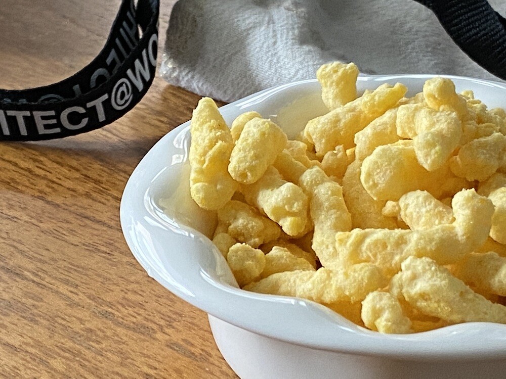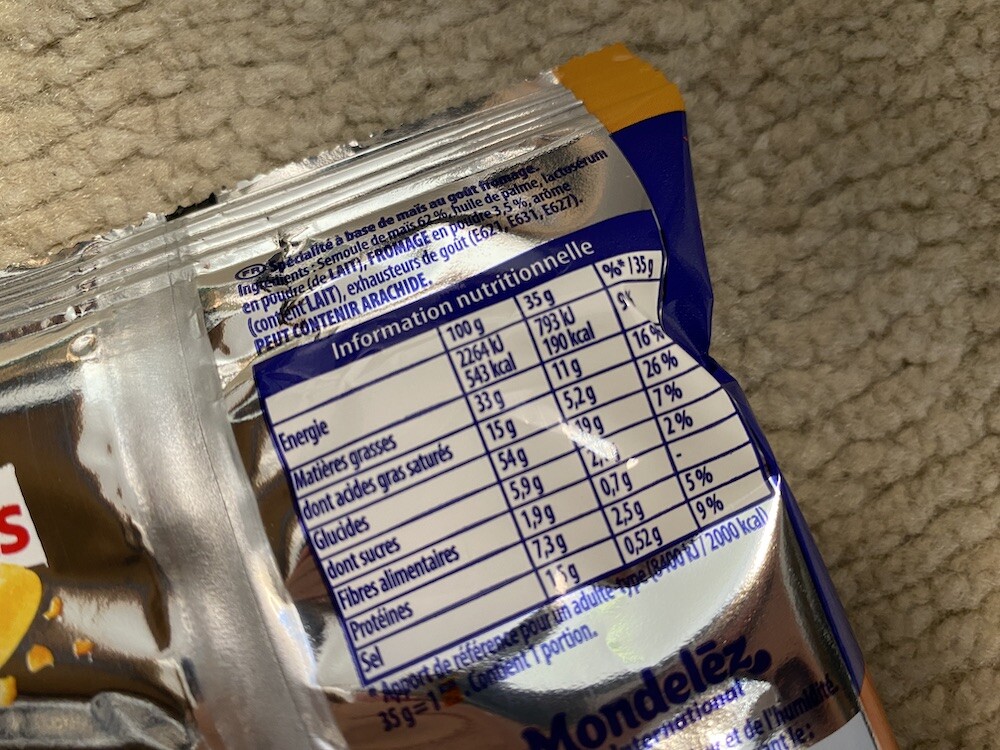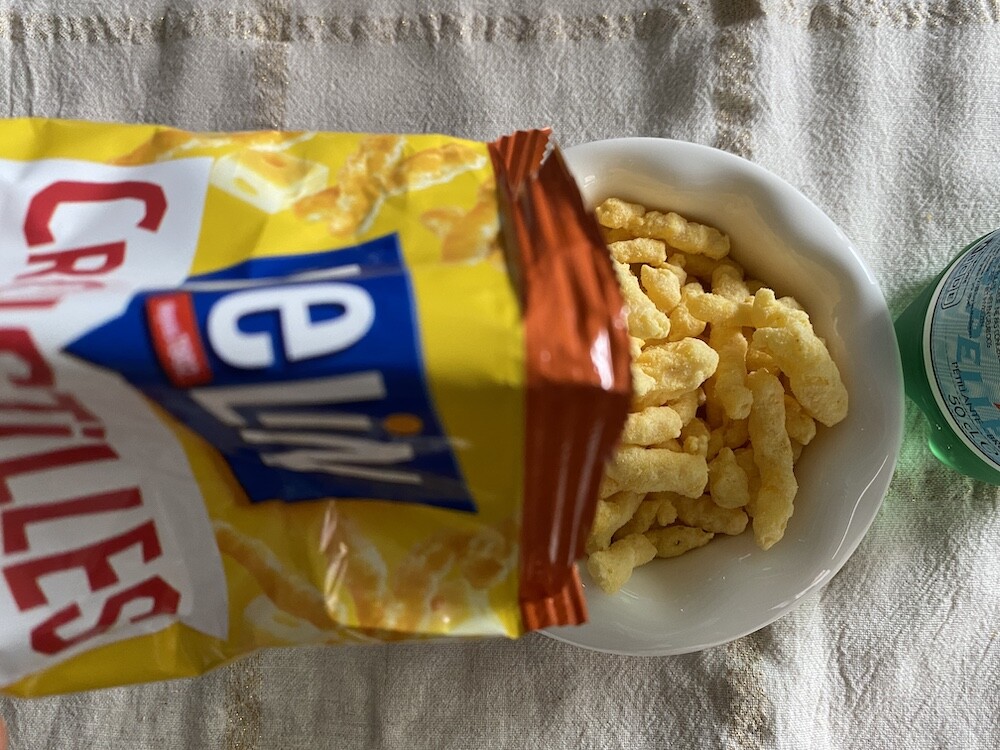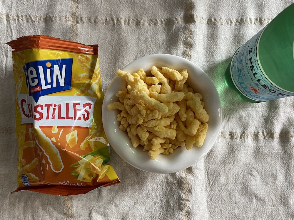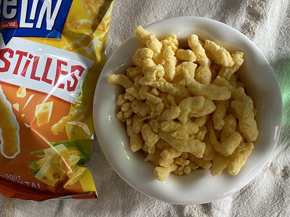 식감은 치토스와 비슷한데 거기에 프랑스인들이 좋아하는 치즈인 에멍딸(에멘탈) 맛을 입혀서 프랑스 스타일의 과자가 되었어요. 딱 1인분으로 포장된 35g의 봉지 안에 노란 과자가 들었는데, 아마 뜯는 순간부터 끝날 때까지 손과 입을 멈추시기 힘들 거예요.