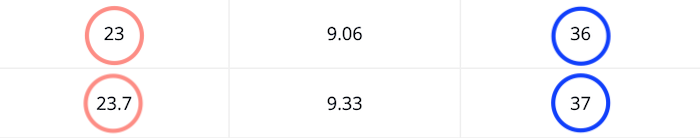 왼쪽 분홍 동그라미가 실제 발 길이, 오른쪽 파란 동그라미가 선택하시는 사이즈입니다.
