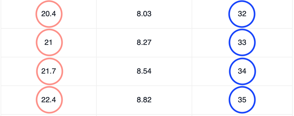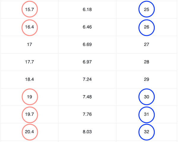 왼쪽 분홍 동그라미가 실제 발 길이, 오른쪽 파란 동그라미가 선택하시는 사이즈입니다.
