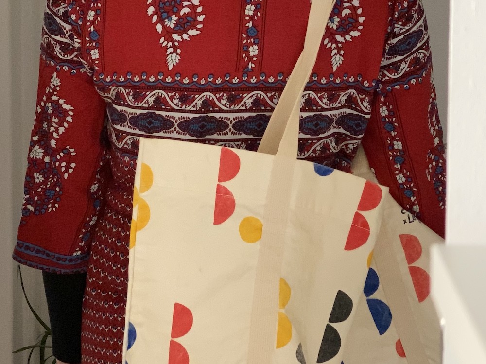 보통 이런 패턴 원단은 가방마다 패턴이 다르기 마련인데 이 가방은 모든 가방의 패턴이 다 같아요. 이렇게 만들려면 원단 손실률이 커서 대부분의 브랜드에서 이렇게까지 공들여 에코백을 만들진 않거든요. 보보 쇼즈, 정말 대단해요!