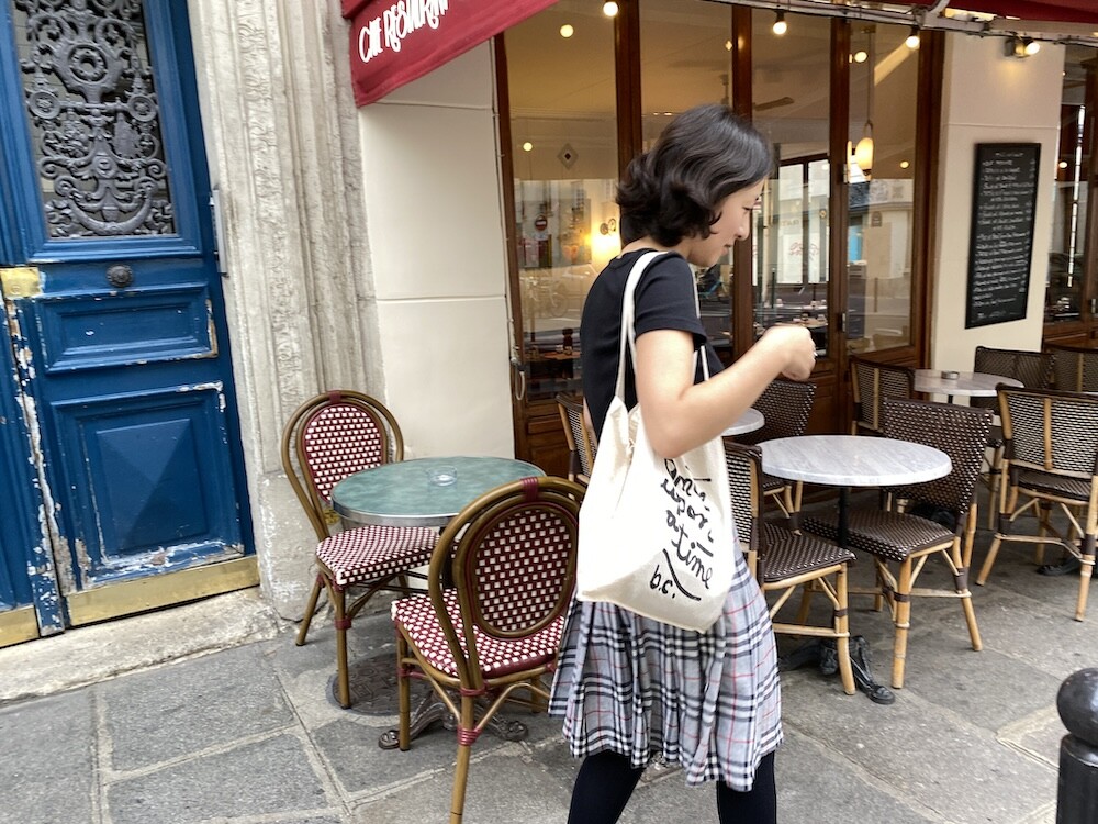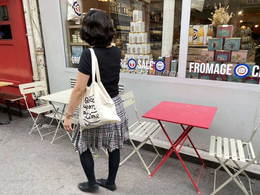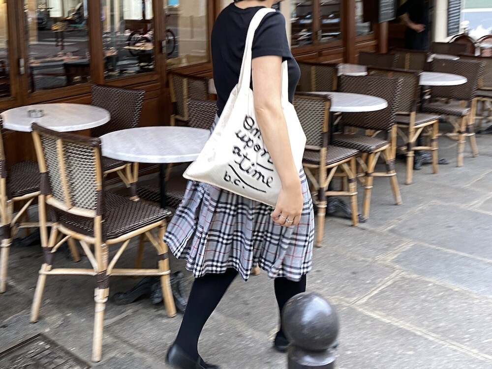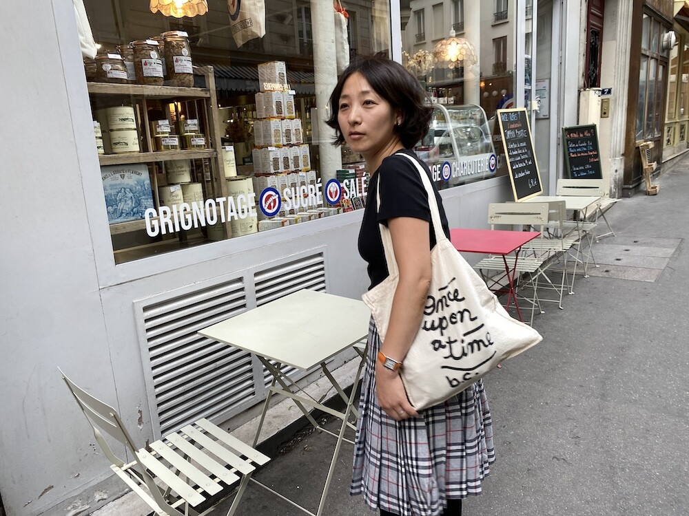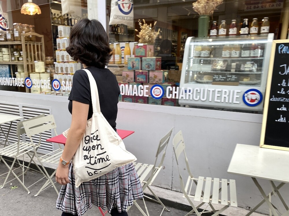 지글지글하게 가공된 면 소재 위에 원스 어폰 어 타임 ONCE UPON A TIME이라는, 붓으로 쓴 것 같은 귀여운 글씨가 프린트된 에코백이에요. 크림색의 원단이 너무 예쁘고, 세로보다 가로가 긴 형태의 에코백이라 독특해서 더 좋은 것 같아요.