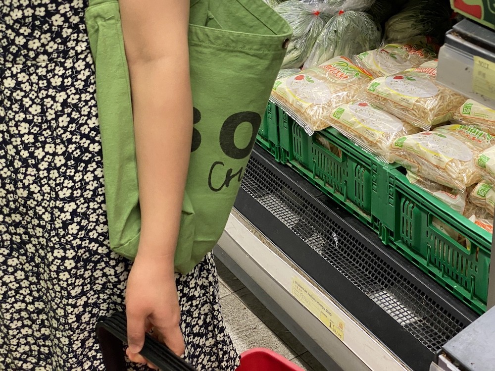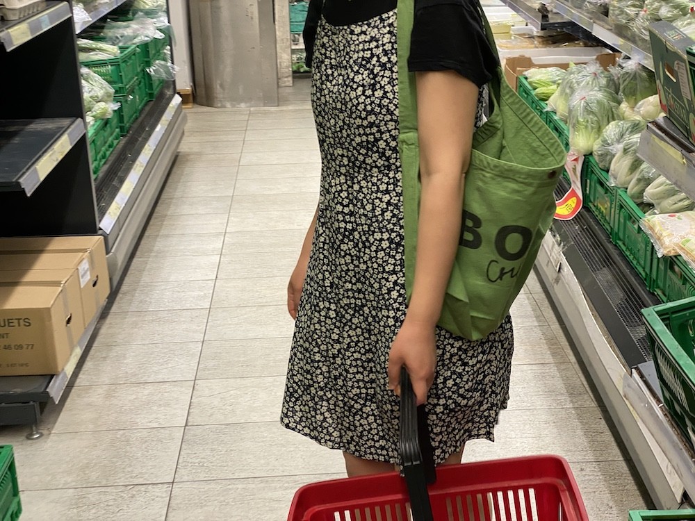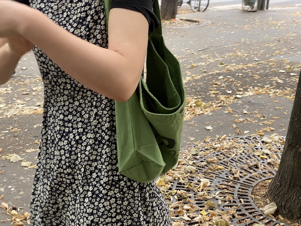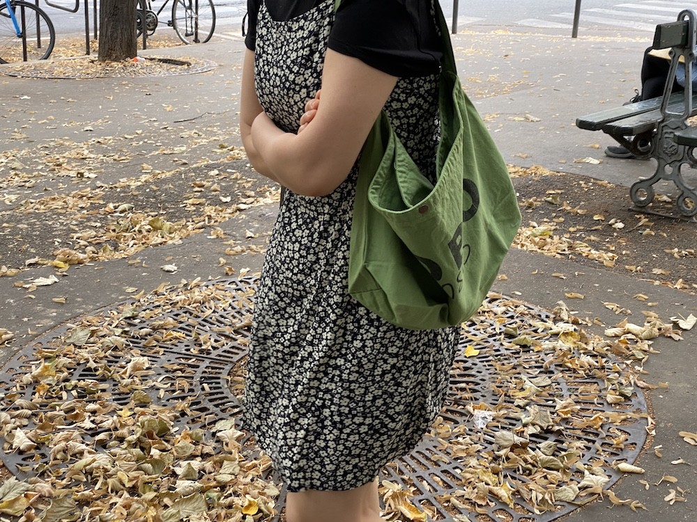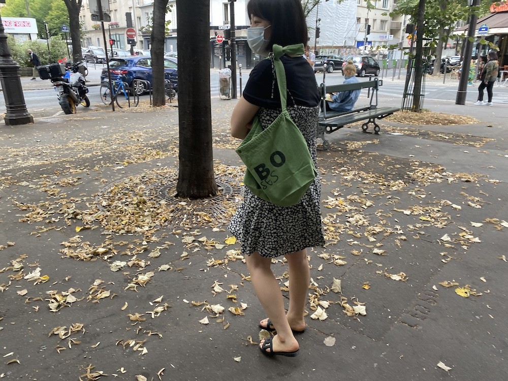 튼튼한 면소재에 BOBO choses라는 글씨가 프린트된 토트백이에요. 끈이 한줄이라 어깨에 메기에도, 크로스로 사용하시기에도 예쁜데, 전 끈 길이가 길다고 느껴져서 질끈 묶어 사용해요. 내부 주머니가 있어 물건들을 나눠 담기 좋고, 입구 부분에 똑딱이가 있어서 안쪽의 내용물이 보이지 않는 것도 참 좋네요.