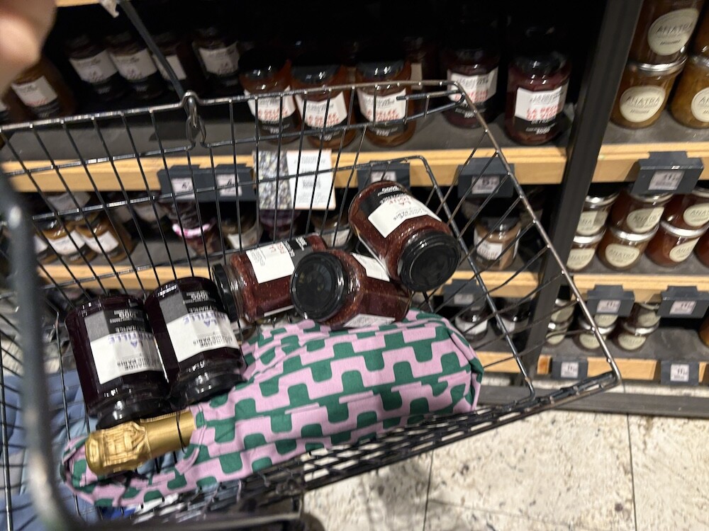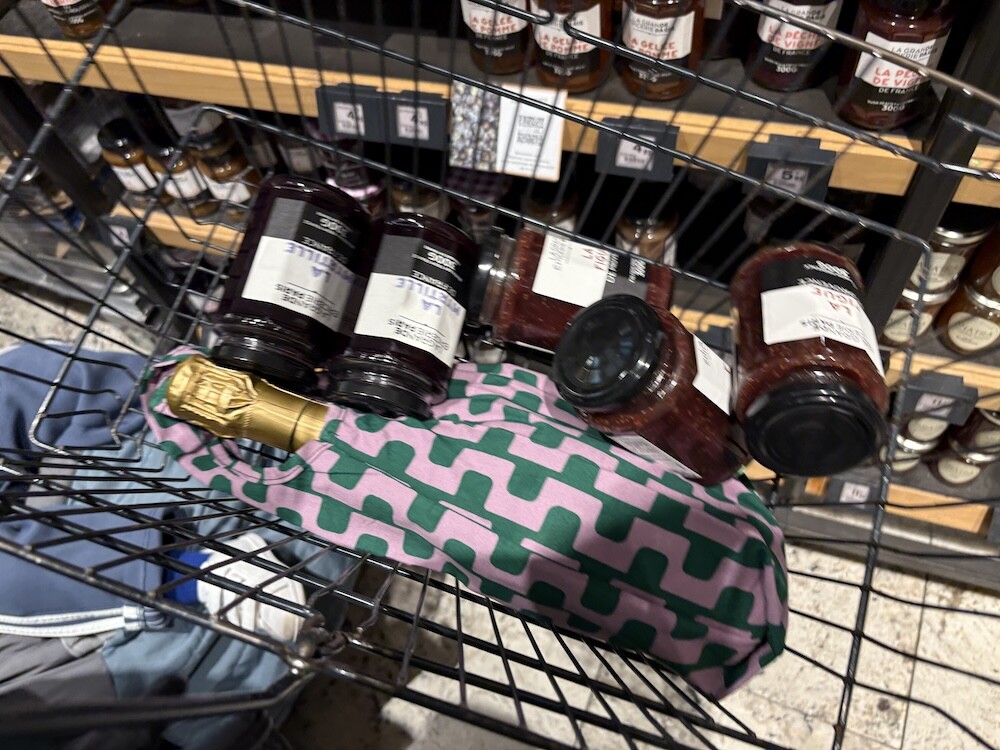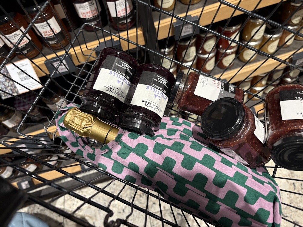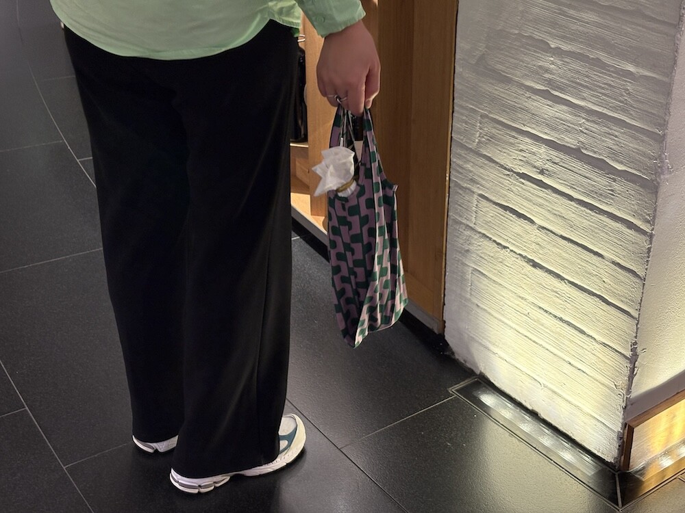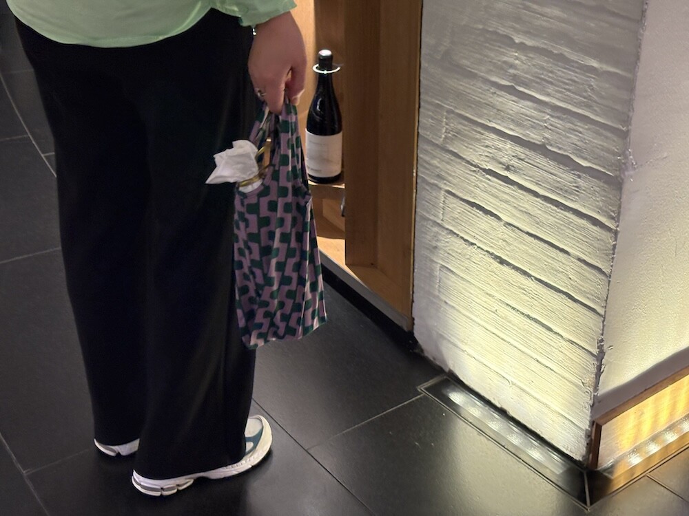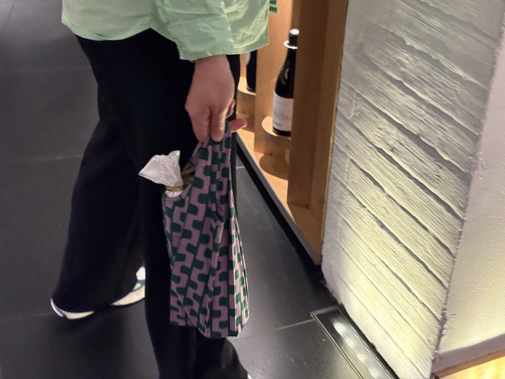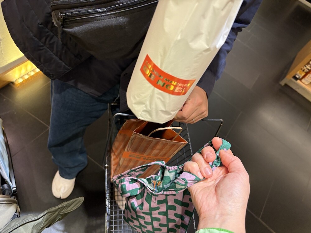 오가닉 면으로 만들어진 음료용 가방이에요. 분홍색과 초록색의 체인 패턴이 예쁘고, 딱 와인 한 병 넣으면 좋은 사이즈라 파티 같은 것 할 때 음료나 술 한 병을 넣어 들고 가시기 좋을 거예요. 와인 뿐 아니라 바게트나 길쭉한 빵을 넣어도 귀엽답니다.