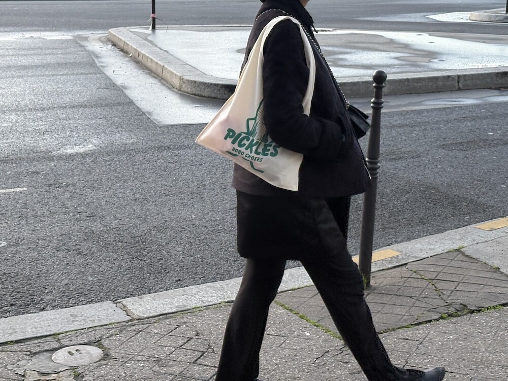 귀여운 오이피클 그림이 프린트된 가방이에요. 그간 보보 쇼즈에서 나왔던 에코백들과는 손잡이 모양이 다르게 생겨서 독특하고 예뻐요.