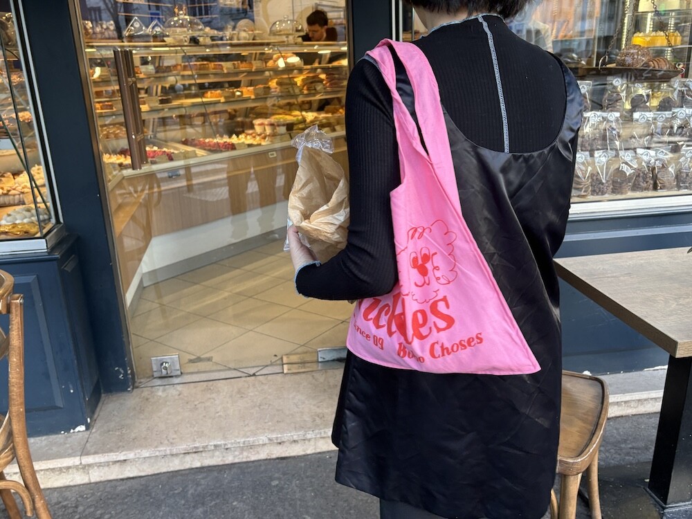 귀여운 강아지 그림이 프린트된 분홍색 가방이에요. 그간 보보 쇼즈에서 나왔던 에코백들과는 손잡이 모양이 다르게 생겨서 독특하고 예뻐요.