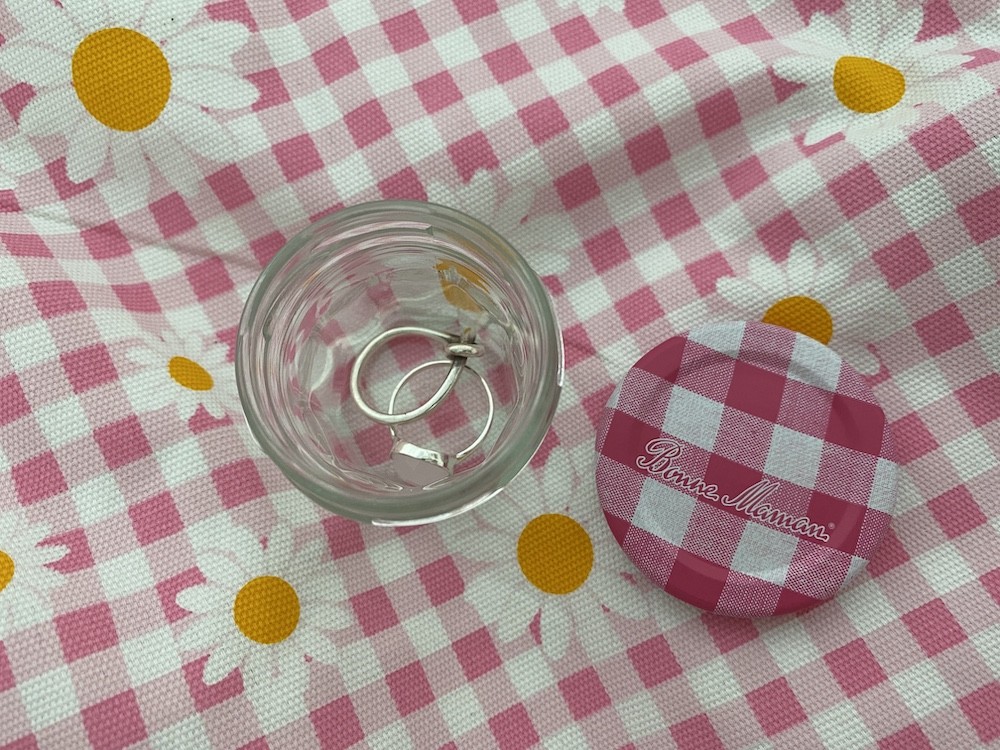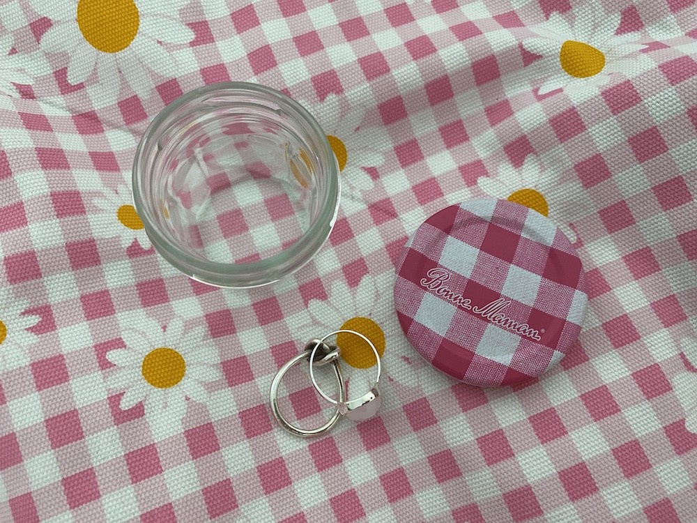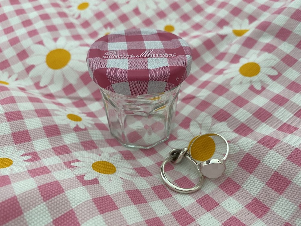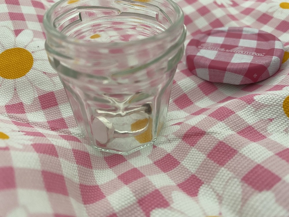 본 마망(Bonne Maman)의 유리병 분홍입니다.