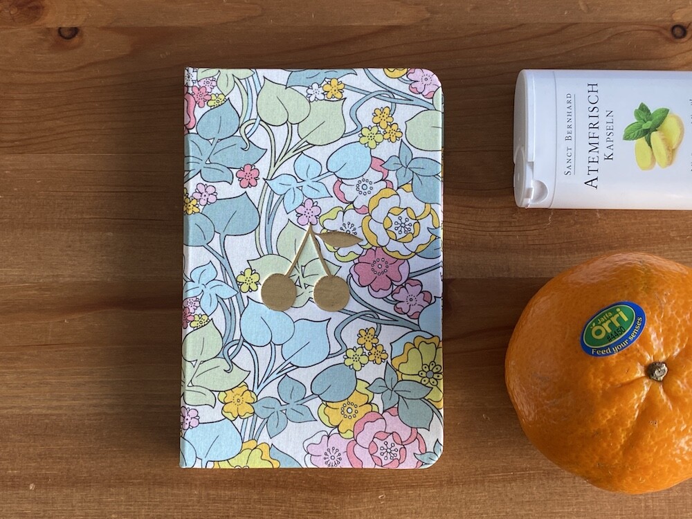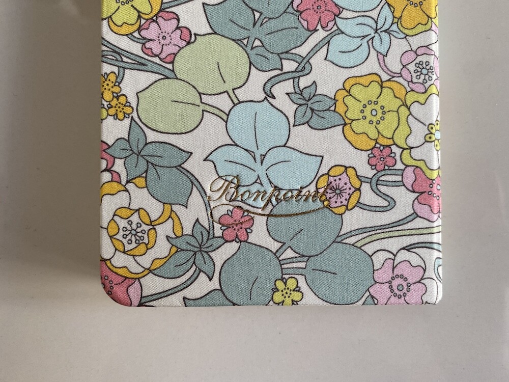 봉쁘앙의 리버티 원단으로 겉을 두른 예쁜 노트예요. 앞쪽 체리 모양과 뒷쪽 Bonpoint이라는 글씨는 금박으로 음각되어 있어 더욱 예쁩니다.