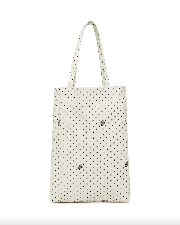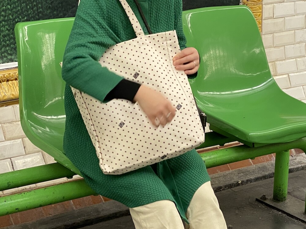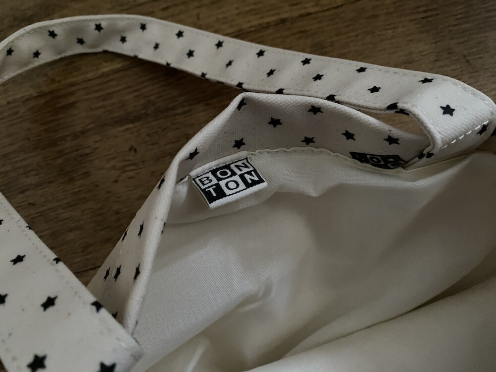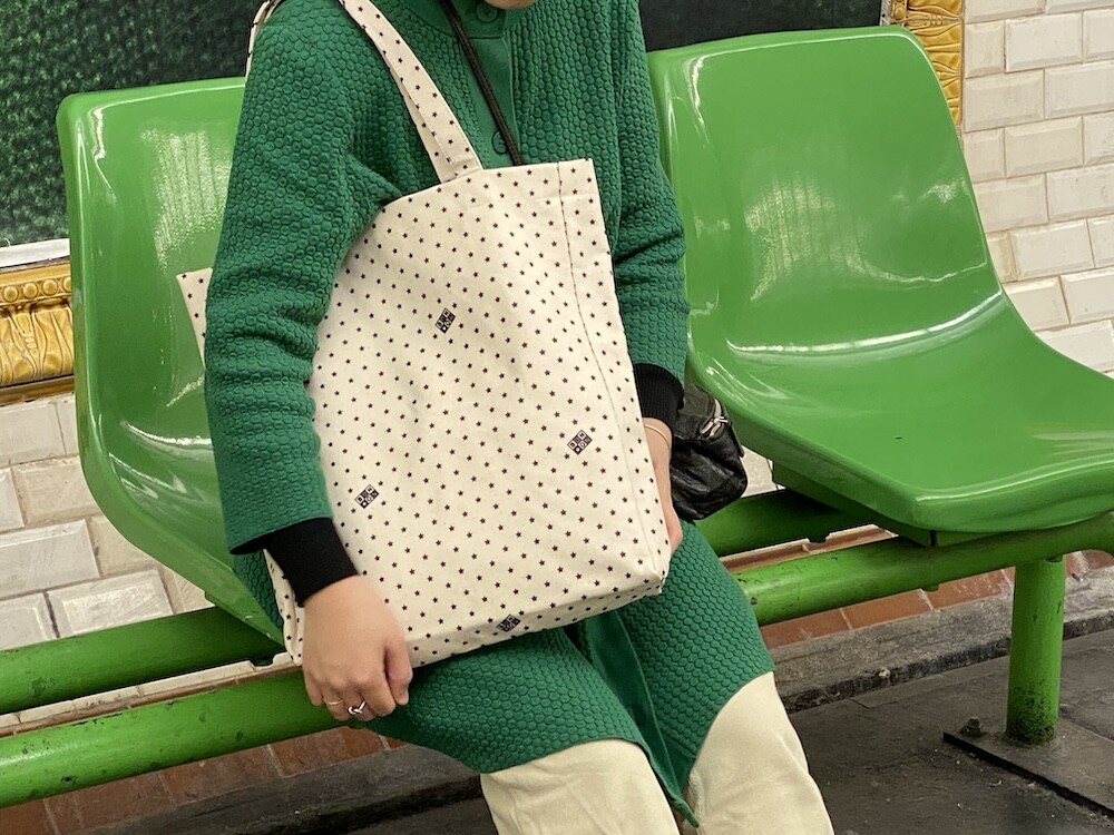 튼튼한 캔버스 소재의 북백이에요. 봉통의 아이코닉 패턴 원단에 방수 처리가 되어 있는 것 같은 느낌이라 비 오는 날에 들고 나갔었는데 생활 방수가 되더라고요. 안감은 따로 한 겹이 더 있고, 박음질도 튼튼하고 소재도 탄탄해서 무거은 책들이나 노트북 같은 것들 넣어 들고 다니시기 좋을 거예요.