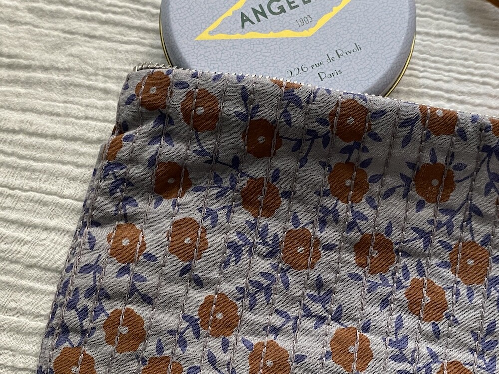 봉통(BONTON) 퀼티드 꽃 파우치_회색과 밤색 gris et marron