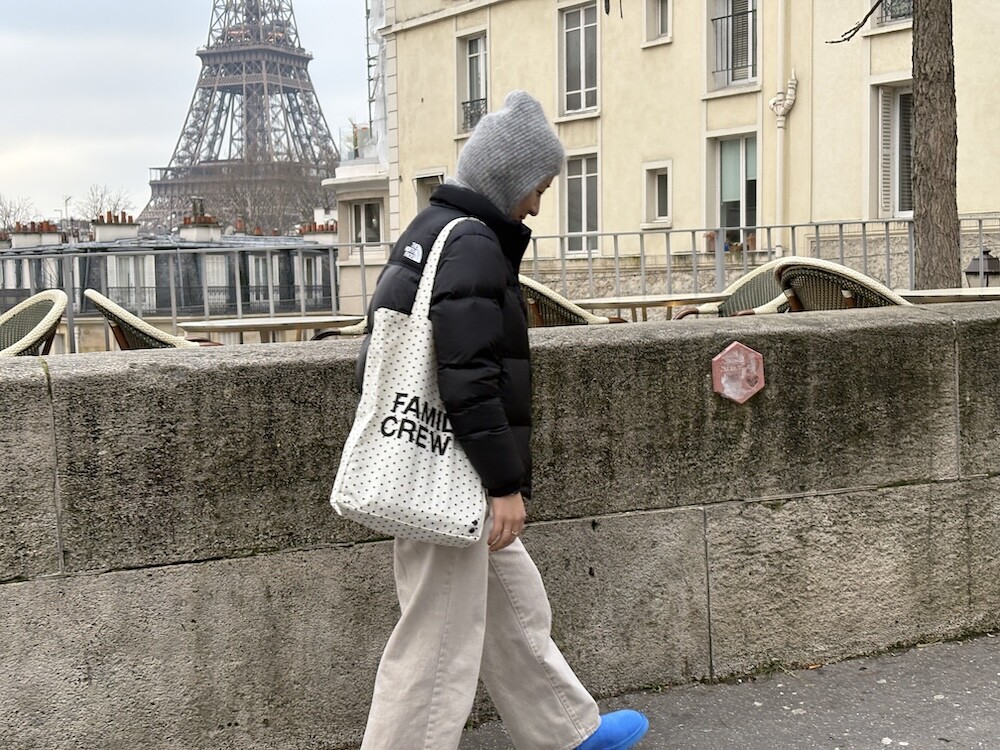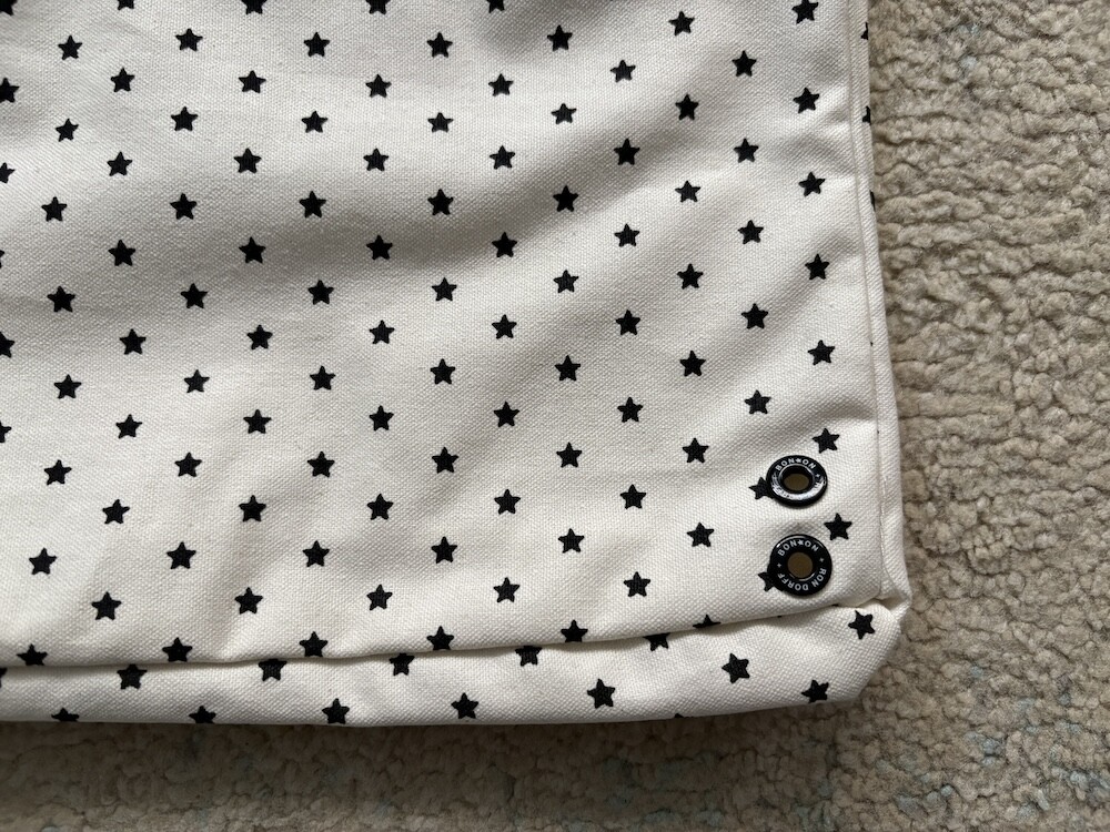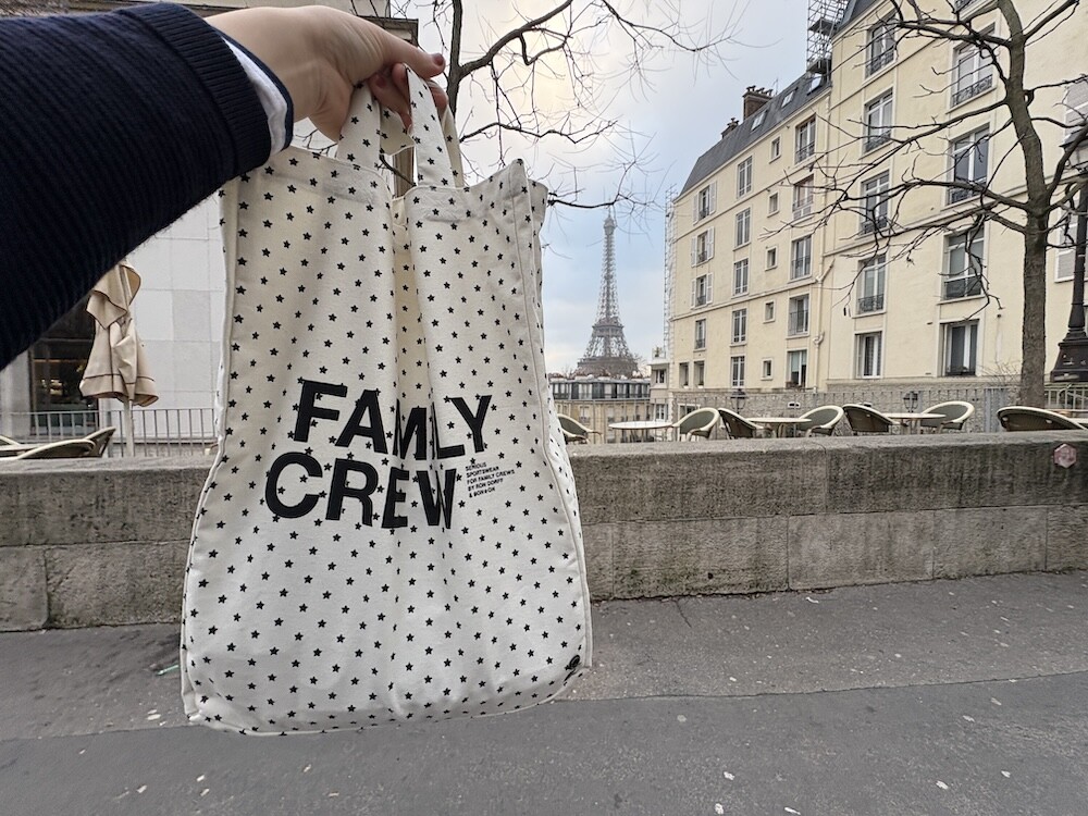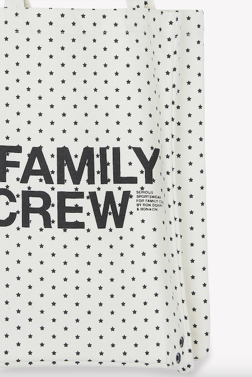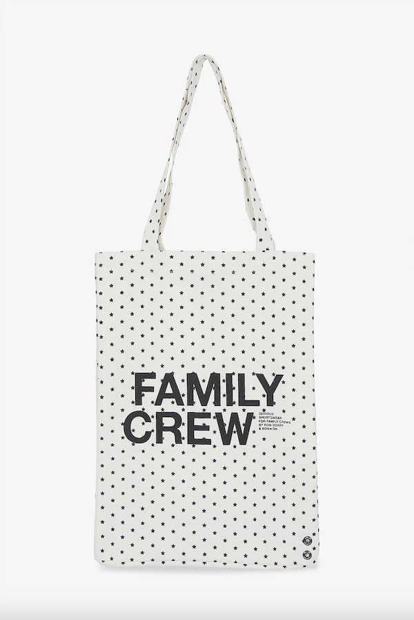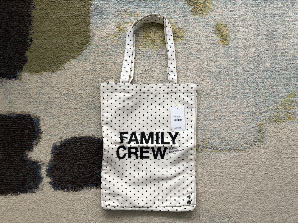 봉통의 아이코닉 패턴 원단으로 만들어진 북백으로, 박스형 디자인의 가방이라 책이나 노트북 같은 것들 넣어 들고 다니시기 좋을 거예요. 한쪽 면에는 론도르프 시그니처 글씨체로 패밀리 크루(FAMILY CREW)라는 글씨가 프린트되어 있고 반대쪽에는 아무 프린트도 없어서 2가지 느낌으로 사용하실 수 있어요. 저 개인적으로는 글씨 없는 쪽으로 메는 게 더 활용도가 높더라고요. 봉통 소재로 만들어진 무지 가방 필요하신 분들 많으셨을텐데, 이 가방을 선택하시면 좋을 것 같아요.