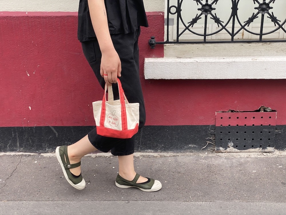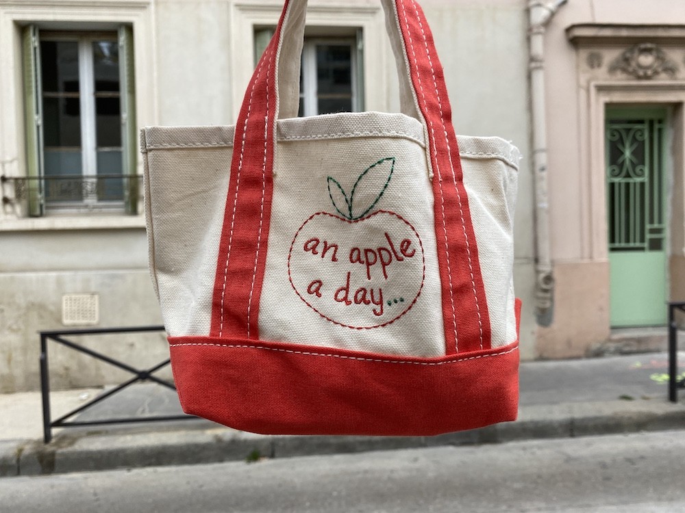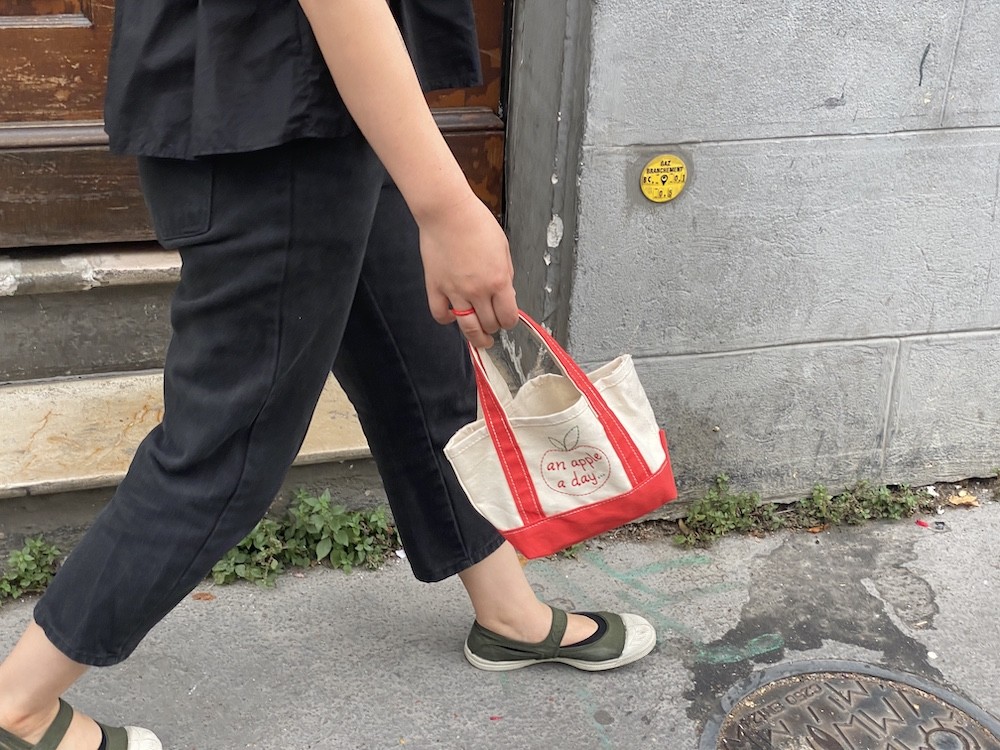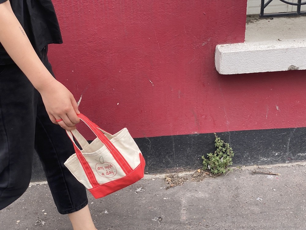 봉통과 세잔(Sézane)의 콜라보 라인에서 나왔던 미니 에코백으로, "an apple a day 하루에 사과 하나" 라는 글씨가 너무 귀여워요. 어린이용으로 나온 가방이라 사이즈가 진짜 작고 귀여운데, 밑면이 넓어서 생각보다 많은 물건들이 들어가요. 어린이가 들면 당연히 귀엽고요. 성인이 손목에 걸고 다니기에도 쁘띠쁘띠 귀여운 매력이 넘치는 가방입니다.