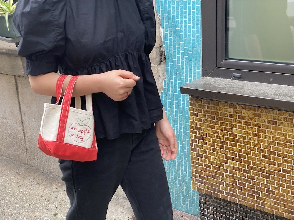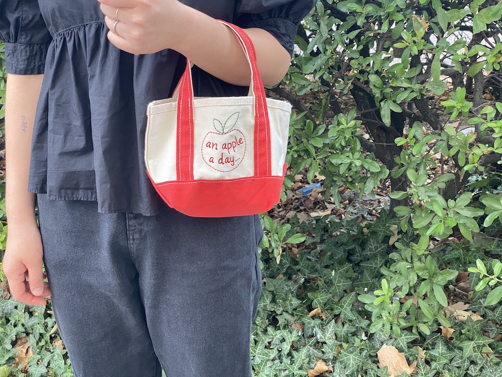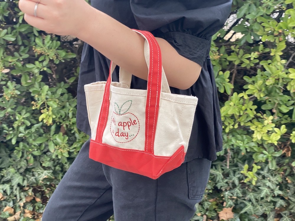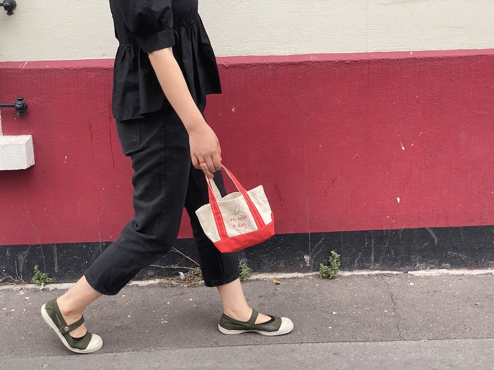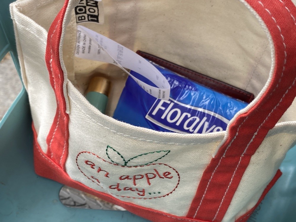 봉통과 세잔(Sézane)의 콜라보 라인에서 나왔던 미니 에코백으로, "an apple a day 하루에 사과 하나" 라는 글씨가 너무 귀여워요. 어린이용으로 나온 가방이라 사이즈가 진짜 작고 귀여운데, 밑면이 넓어서 생각보다 많은 물건들이 들어가요. 어린이가 들면 당연히 귀엽고요. 성인이 손목에 걸고 다니기에도 쁘띠쁘띠 귀여운 매력이 넘치는 가방입니다.