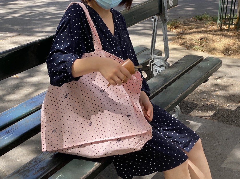 봉통 시그니처 모양의 원단을 분홍색으로 염색하여 만든 가방으로, 크기가 넉넉해서 아이들 용품 넣어 가지고 다니시는 용도로 많이 사용하시는 제품이에요. 어깨끈이 튼튼한데다가 어깨에 메기 충분한 길이라 좋아요.