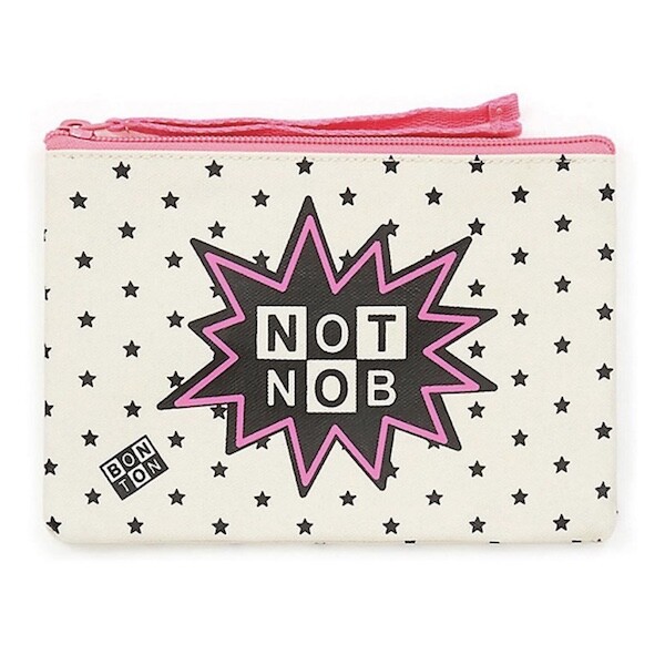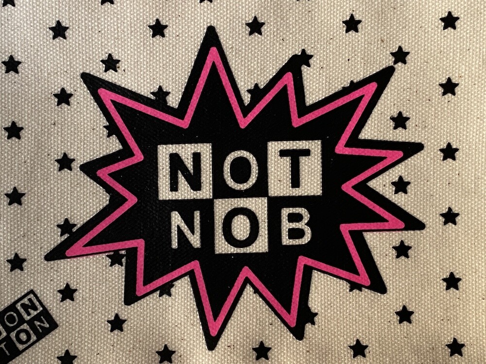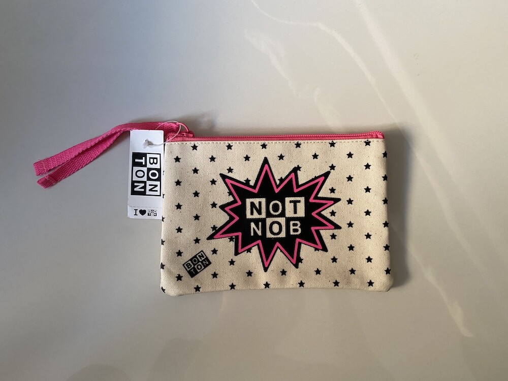 봉통의 시그니처 면에 코팅을 한 원단이라 생활 방수 충분히 가능합니다. BONTON이라는 글씨를 뒤집어 "NOT NOB"이라고 프린트를 했는데, 글씨의 위치를 뒤집어 놓은 것도, 주변을 감싸고 있는 번개 모양도 너무 귀엽네요. 앞면엔 글씨가 있고 뒷면엔 글씨가 없습니다.