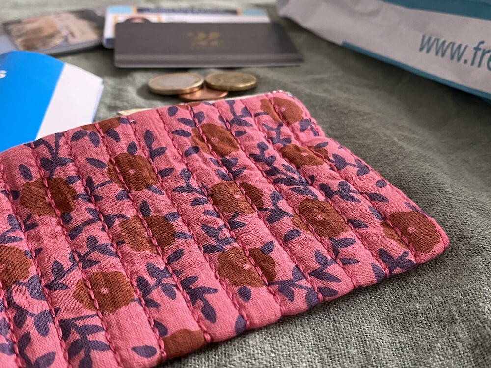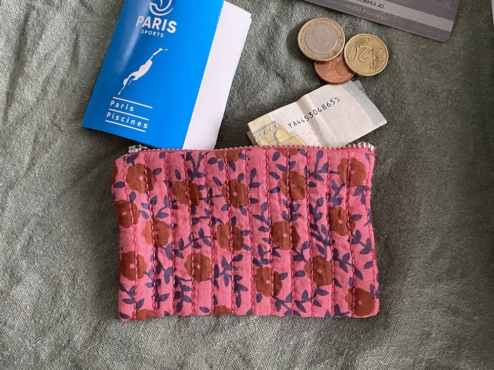 꽃 무늬의 면 원단에 실로 퀼트를 하여 빈티지한 느낌이 나는 미니 파우치로, 사이즈가 작아서 어디에나 쏙 넣어 다니기 편해요. 카드보다 큰 사이즈라 카드 지갑으로 사용하신다면 카드를 여러 장 넣으실 수 있고, 카드 외에 지폐나 동전, 반지 같은 작은 물건들을 넣어 다니기 좋더라고요.