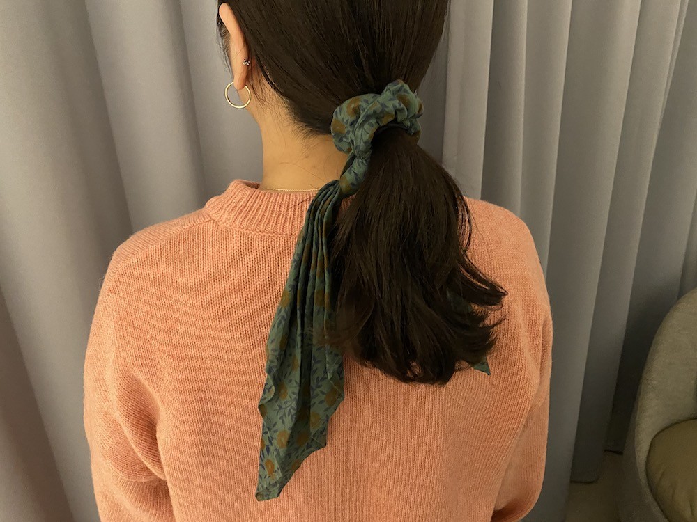 이 롱 슈슈는 머리를 묶을 수 있는 고무줄 부분 밑에 스카프처럼 원단이 덧대어져 있어서 뒷모습을 예쁘게 연출하실 수 있어요. 너무 사랑스러운 모양이라 여기저기 다양한 옷에 매치하시면 청순한 느낌을 쉽게 내실 수 있을 것 같아요. 얼른 봄이 왔으면 좋겠네요!