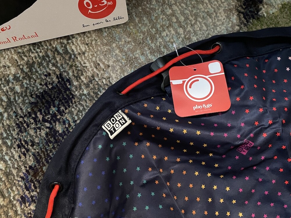봉통(BONTON)과 벨기에 브랜드 플레이앤고(play&go)의 콜라보 제품인 레인보우 토이백 라지 사이즈입니다.