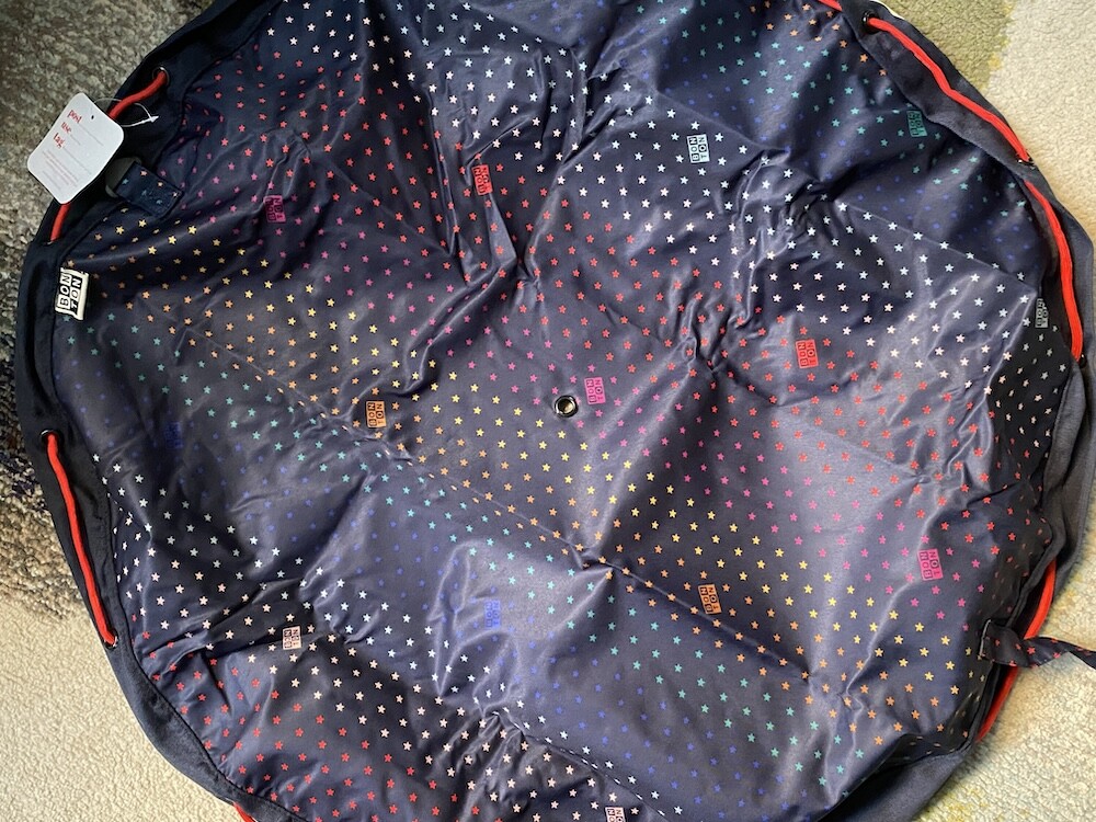 토이백을 펼쳐놓고 그 위에서 장난감을 가지고 놀다가 따로 정리할 필요없이 끈을 당겨주면 정리가 끝나는 신박한 아이디어 상품이에요. 토이백과 함께라면 지겨운 장난감 정리가 필요 없어져요! 특히 이 제품은 실내에서도 사용할 수 있지만 야외 활동을 위해 만들어진 제품이에요. 그래서 물놀이시 사용이 가능하도록 워터 프루프 기능이 추가되었고, 물놀이나 모래놀이 할 때 물과 모래가 빨리 빠질 수 있게 중간에 구멍이 있어요. 또 양쪽에 달린 끈을 연결하면 쫙 조여 가방처럼도 멜 수 있으니 너무 편하겠죠?