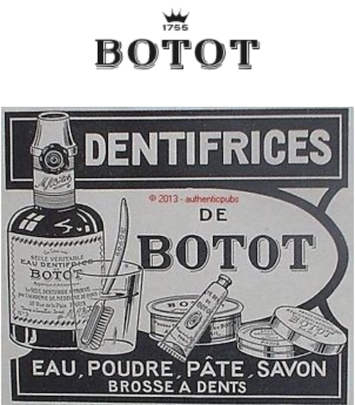 보또 치약은 1755년에 왕궁의 의사였던 에듬 프랑수와 줄리앙 보또(Edme-François-Julien Botot)가 루이 15세를 위해 특별히 만든 구강 청결제 오 드 보또(EAU DE BOTOT)의 오리지날 방식에서 영감을 받아 만들어진 치약이에요.