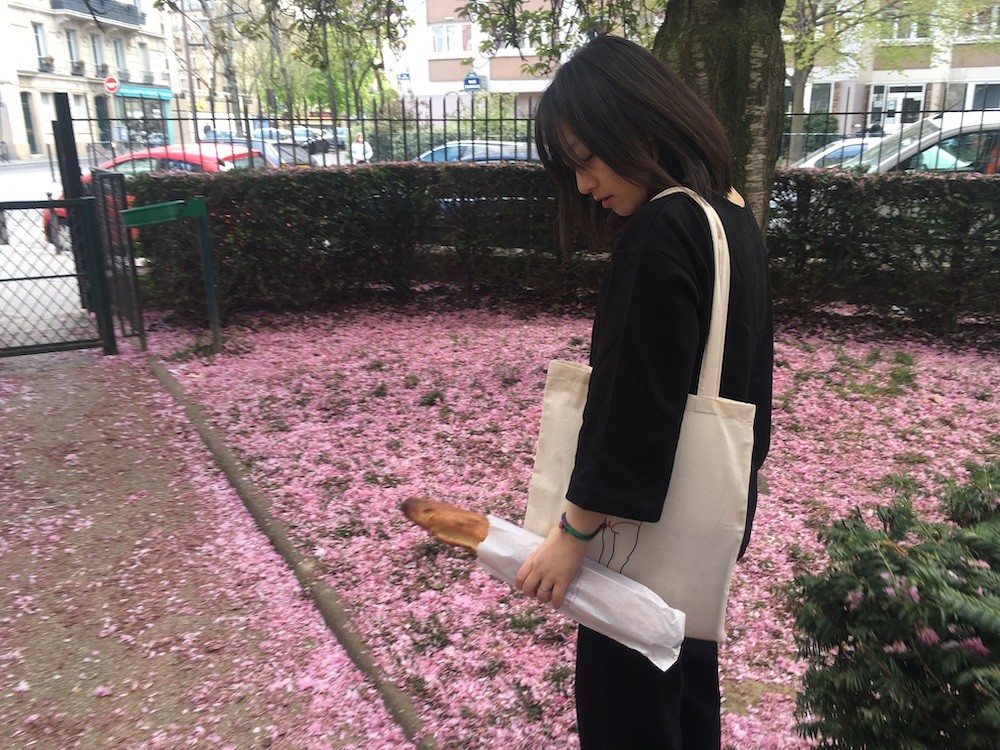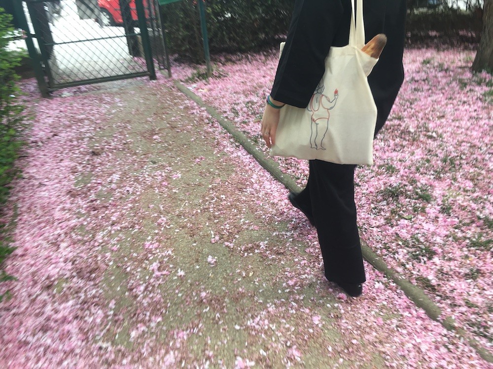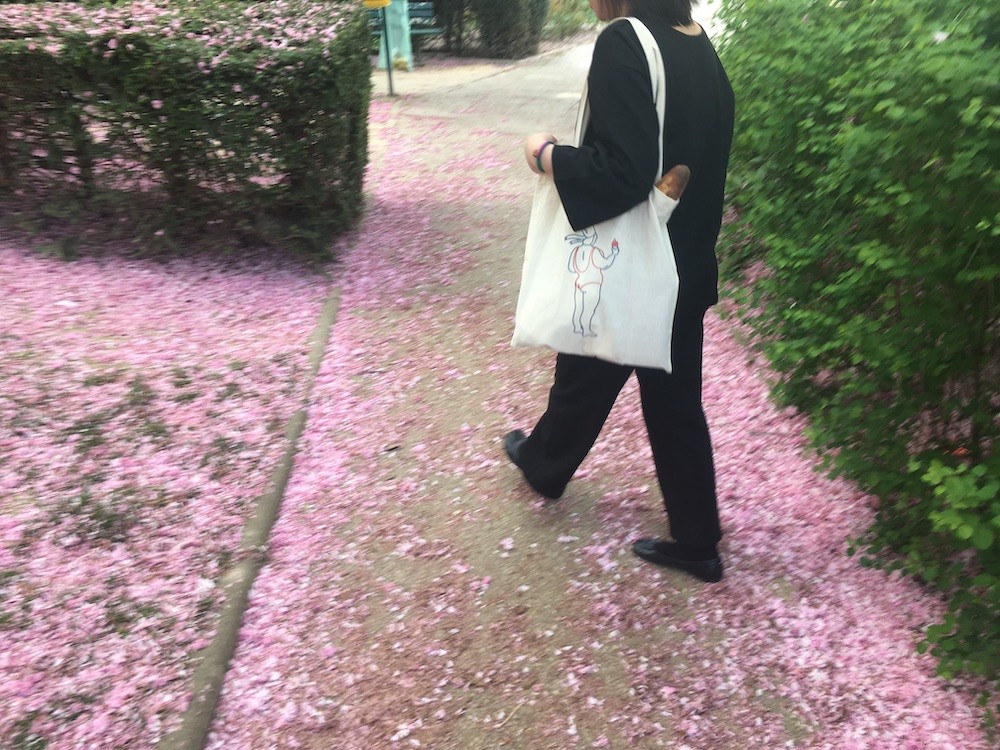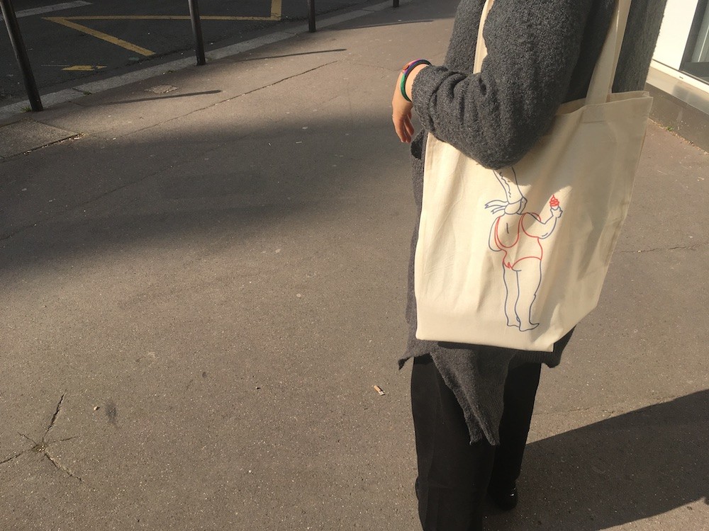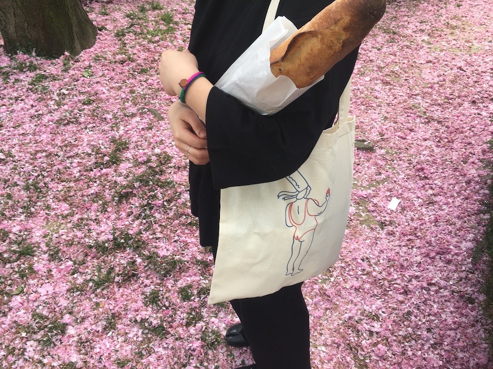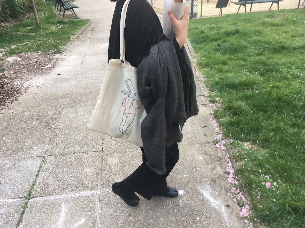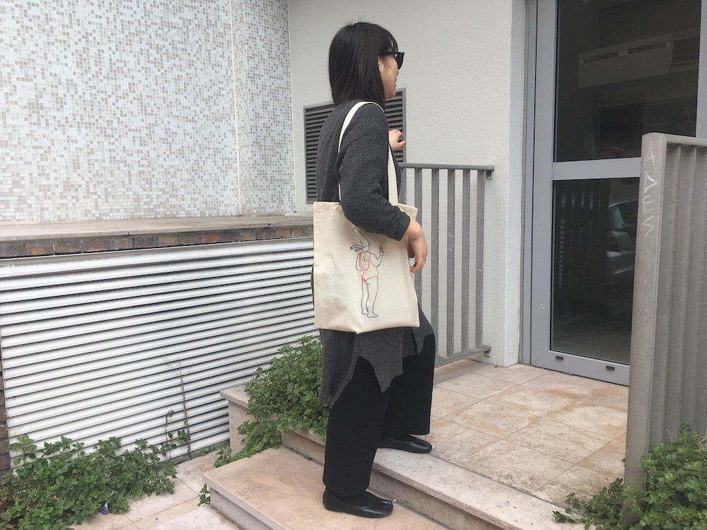 브르타뉴는 프랑스의 서쪽 윗부분에 있는 바닷가와 접한 지역이에요. 이 에코백은 수영을 하기 위해 빨간 수영복을 입은 여자를 귀엽게 그려놓았는데요, 몸매가 왠지 저를 보는 것 같아 애착이 많이 가는 가방이에요!