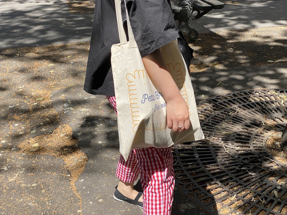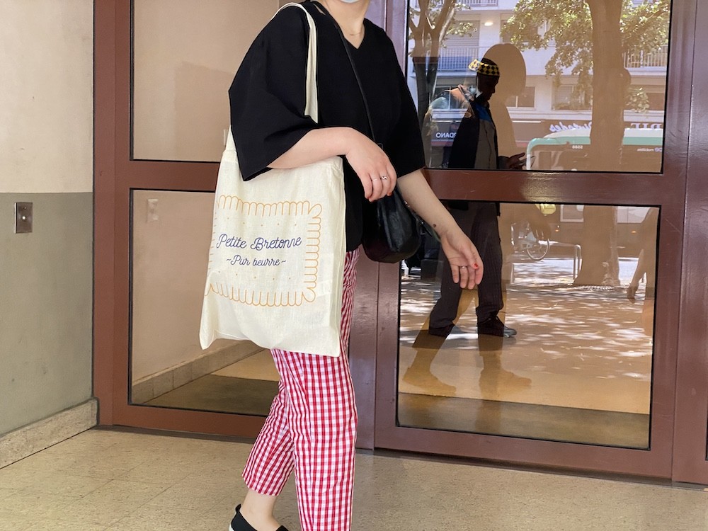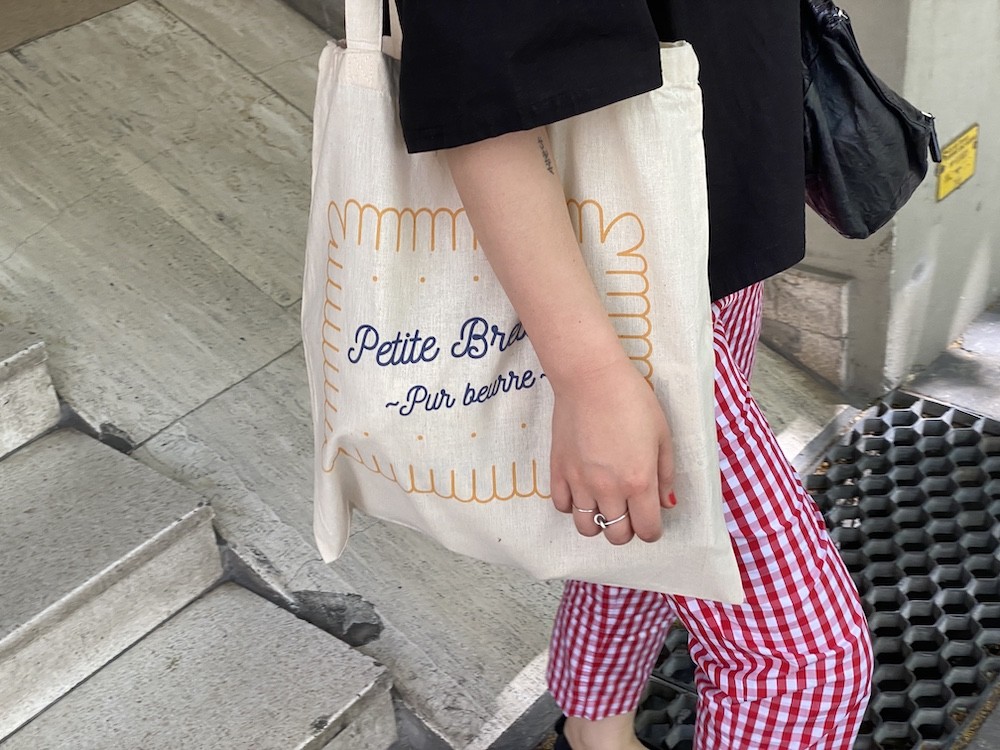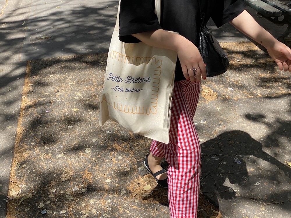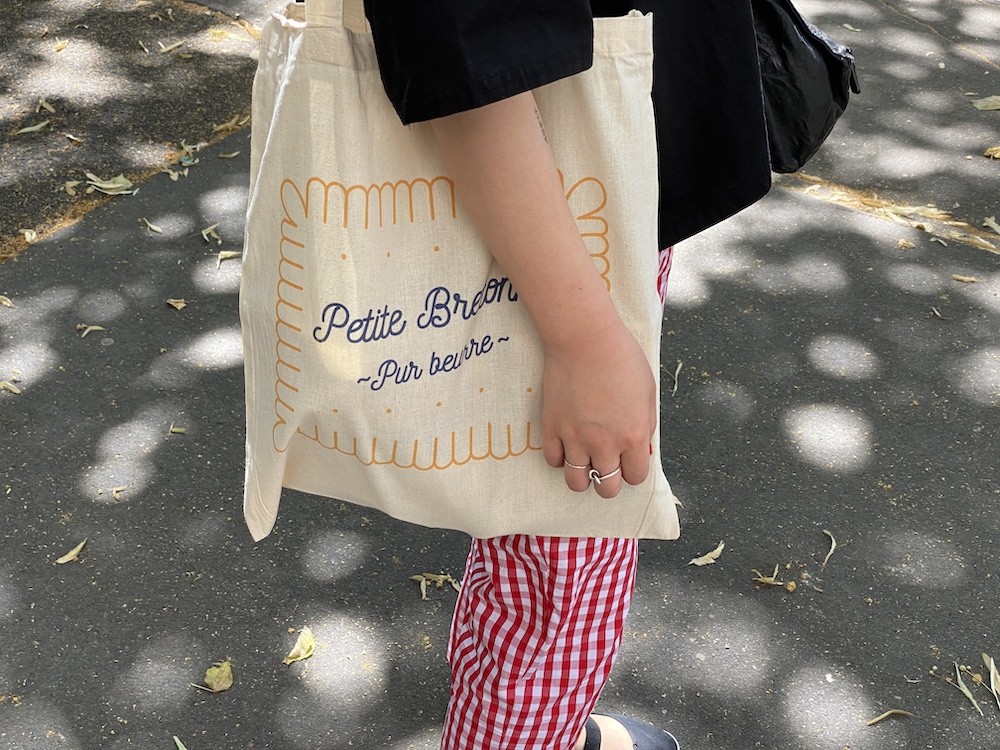 브르타뉴는 프랑스의 서쪽 윗부분에 있는 바닷가와 접한 지역이에요. 에코백에 씌여 있는 "Petite Bretonne"는 "브르타뉴 소녀" 라는 뜻이에요. 파리 여자들을 "빠히지엔느"라고 부르는 것처럼, 브르타뉴 지방의 소녀 혹은 귀여운 여자들을 "Petite Bretonne"라고 불러요. 브르타뉴 지방은 제가 이전에도 간식으로 자주 소개했던 "걀레뜨"라는 비스킷이 유명한데요. 이 에코백에는 네모난 걀레뜨가 그려져 있어서 더 귀여운 것 같아요.
