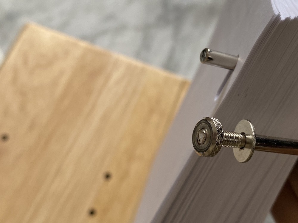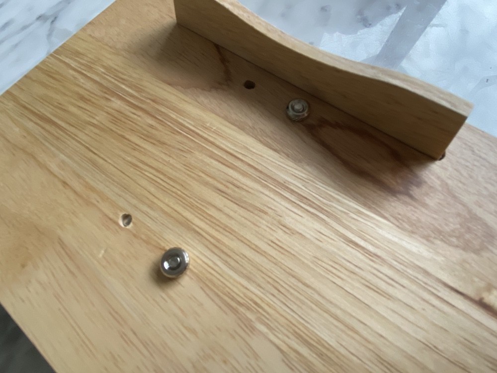 그 고리를 나무판에 꽂고 나사를 조여주세요.