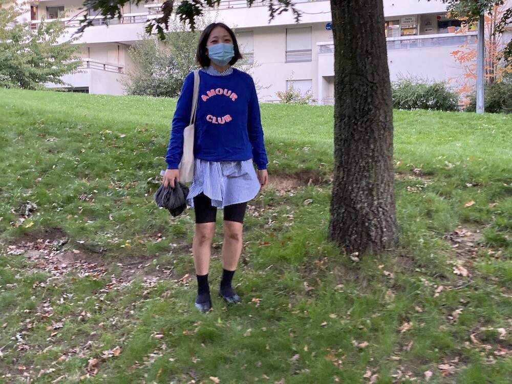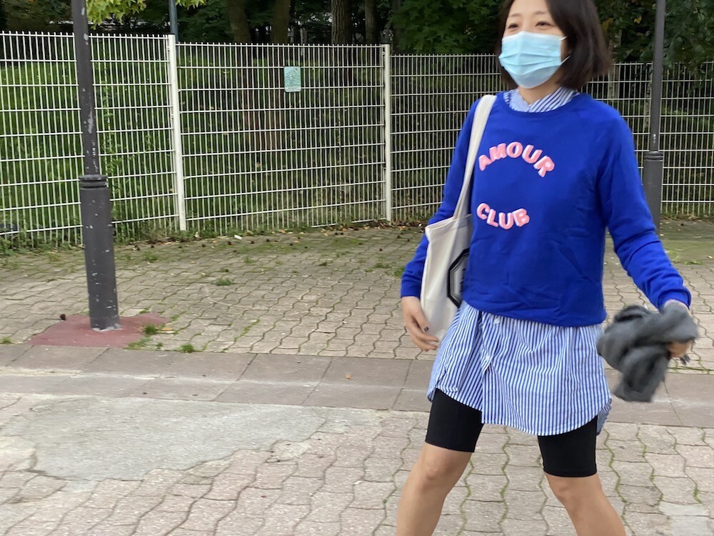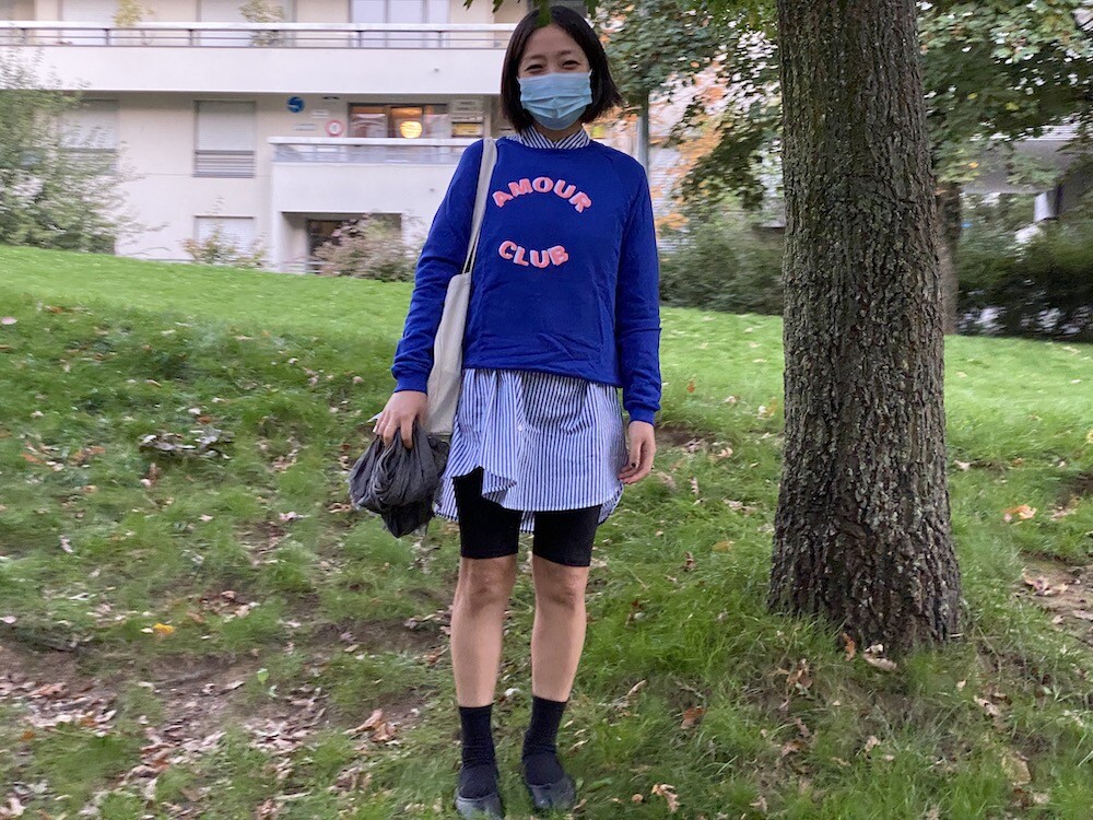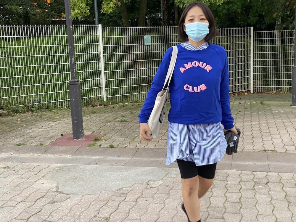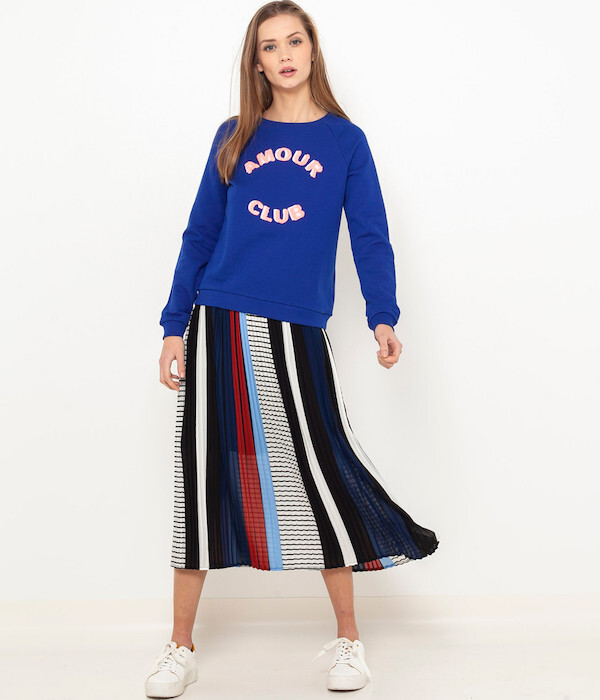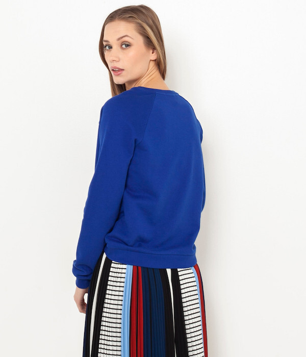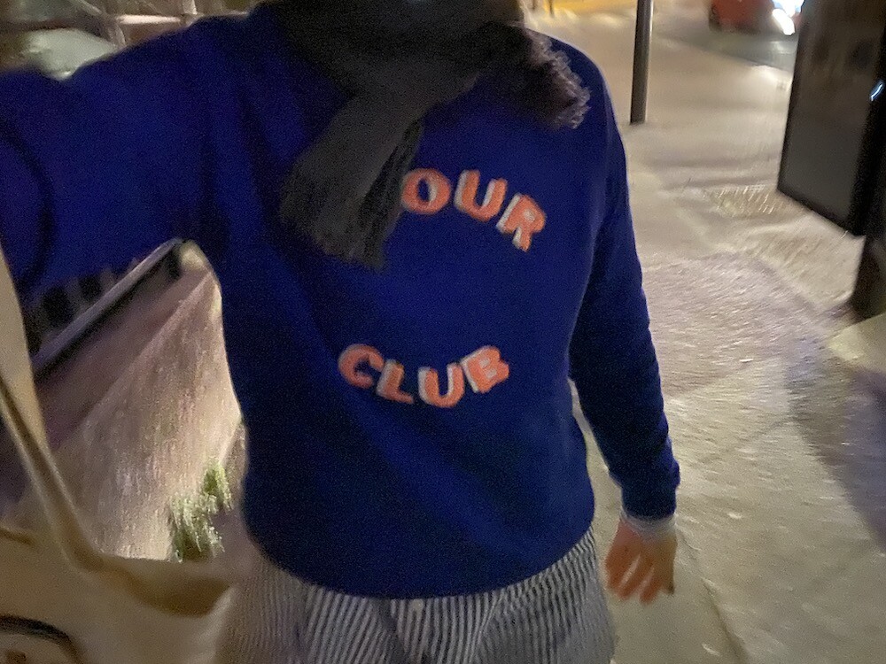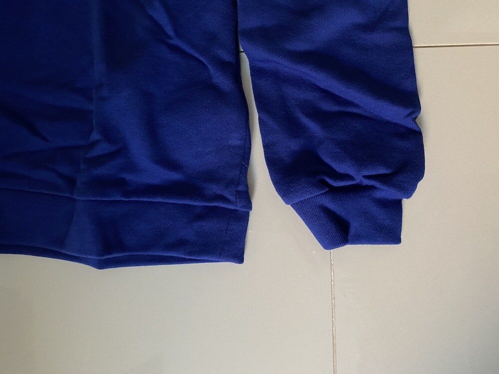 너무 두껍지 않은, 안쪽에 기모가 살짝 있는 파란색 원단에 아무흐 클럽 AMOUR CLUB이라고 글씨가 써져 있는데 이게 보글보글한 자수예요. 자수인 것도 예쁜데 분홍색은 또 얼마나 예쁜지! 딱 제가 좋아하는 파랑색과 분홍색의 조화로 귀여운 느낌을 잘 살린 스웻셔츠랍니다.