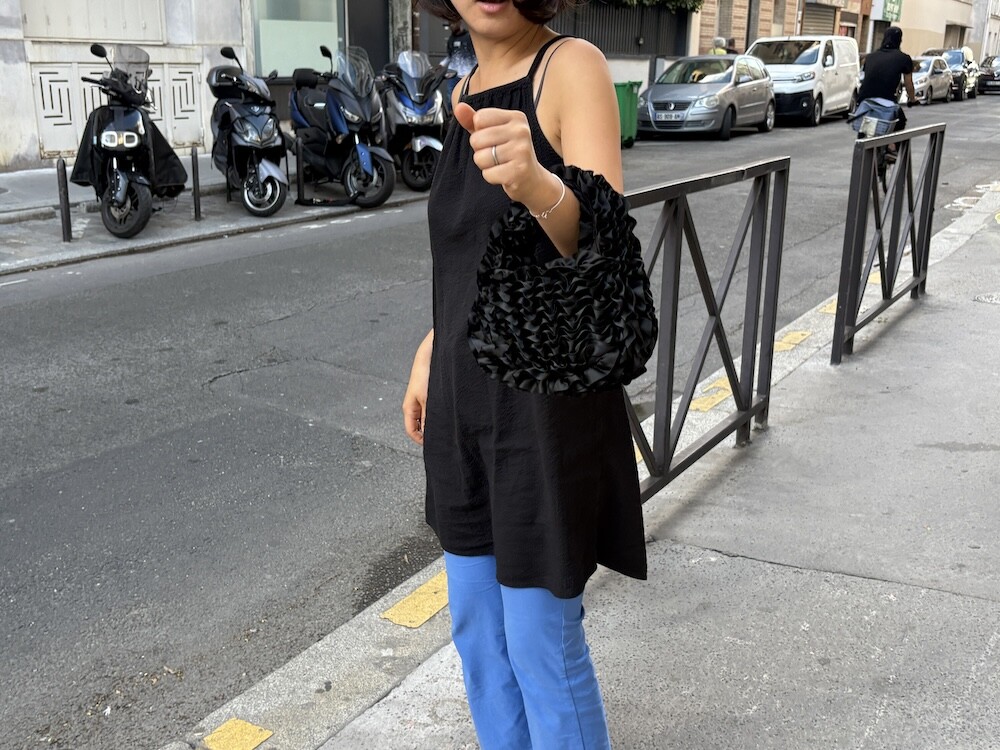 프릴백의 마이크로 사이즈 제품입니다. 팔목에 끼기 딱 좋은 사이즈에 리본끈을 주름 잡아 모아 놓은 듯한 느낌이 예뻐요. 특히 이 미니백을 들면 꾸민 듯한 느낌이 나서, 옷을 편안하게 입었어도 신경을 쓴 것 같은 느낌이 나는 게 마음에 들었어요. 저는 제 선글라스와 아기 선글라스, 과자와 아기 퓨레 정도 넣어 들고 다니니 바로바로 꺼낼 수 있어 편하고 좋더라고요.