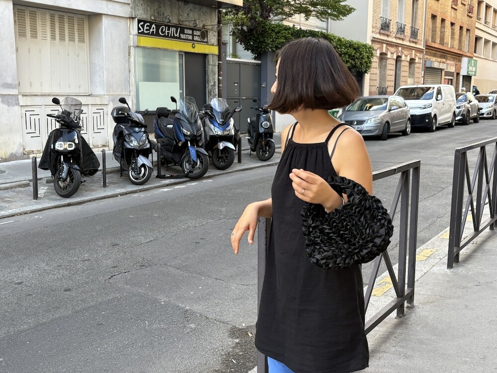 코스(COS) 달리아 Dahlia 마이크로백(미니 프릴백) 검정입니다.