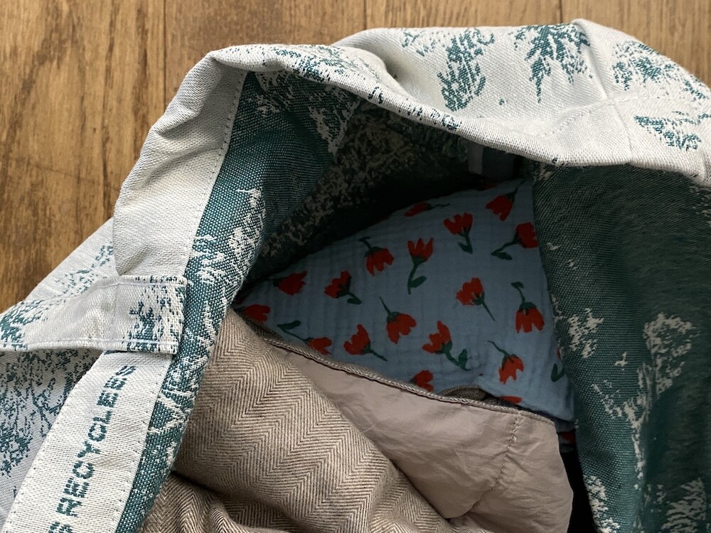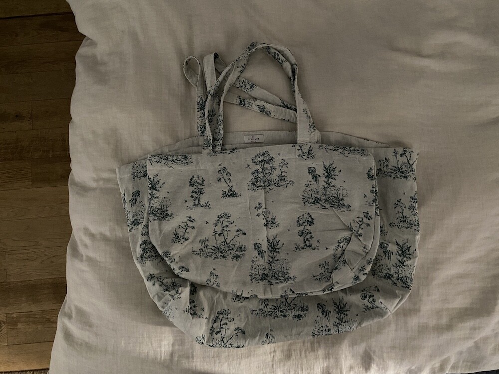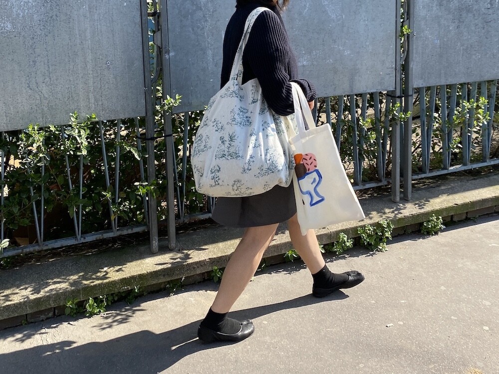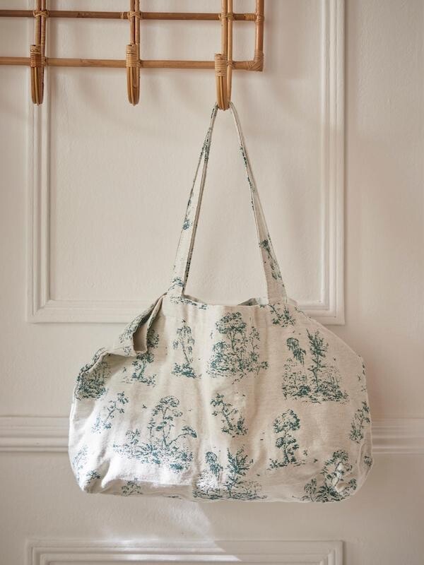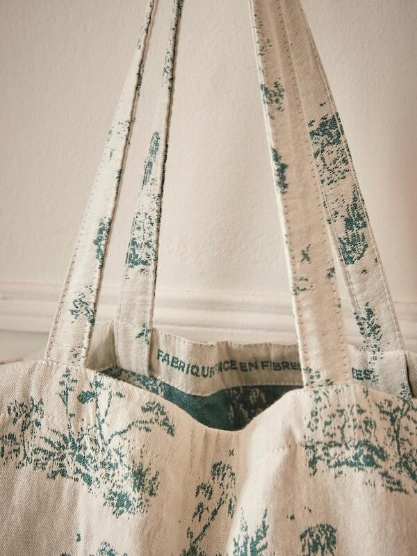 초록색의 숲 패턴이 있는 자카드 원단으로 만들어진 이 에코백은 100% 재활용 소재로 구성되어 있어 더욱 특별해요. 재활용 코튼과 재활용 섬유로 가방을 만들었다니! 시릴류스가 환경을 생각하는 방법은 이렇게나 아름답고 예쁘네요.