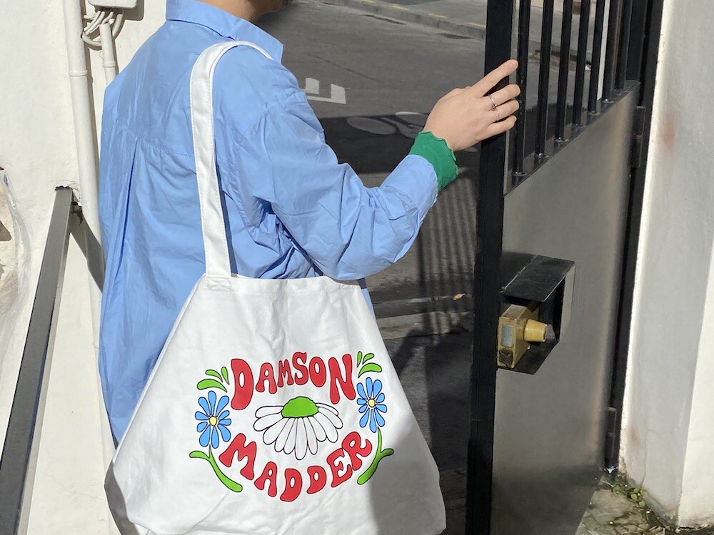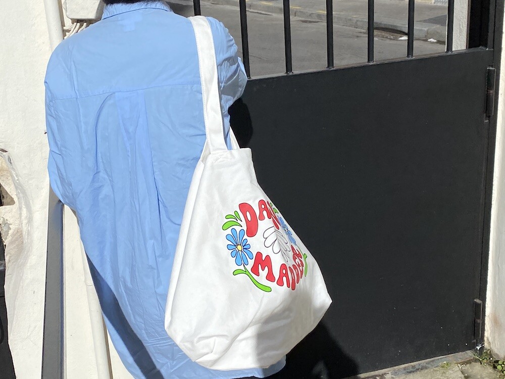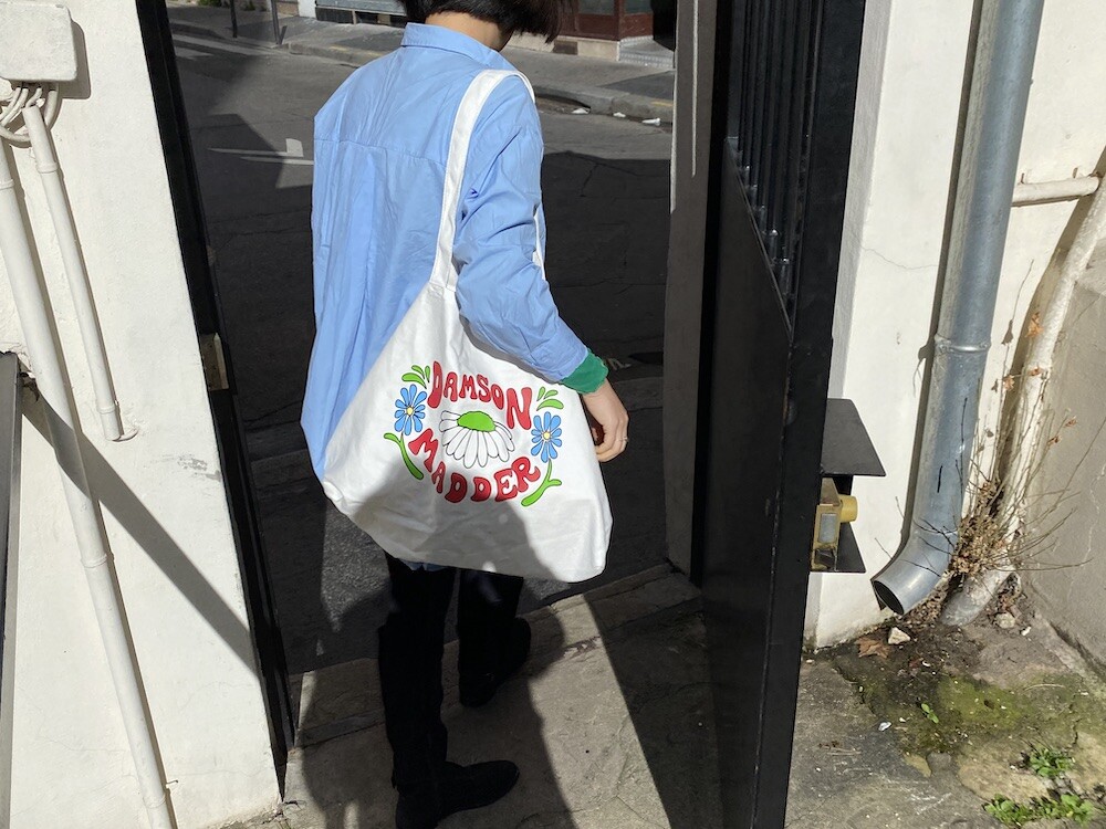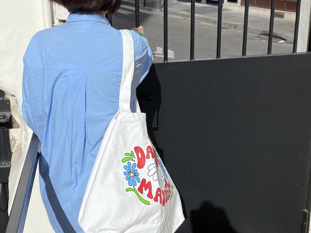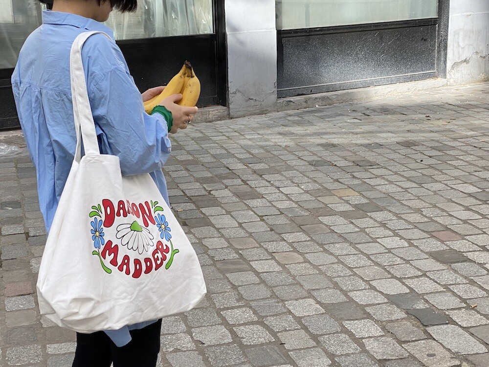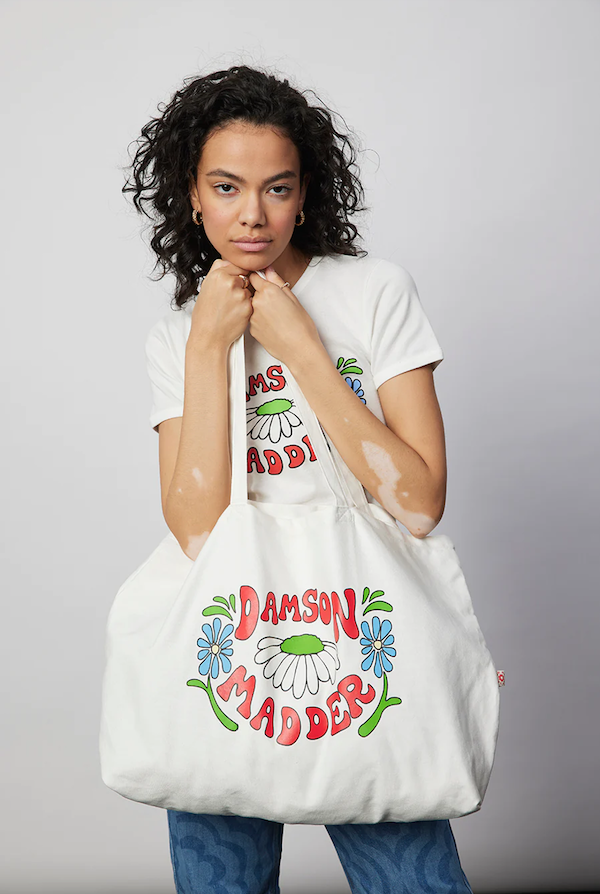 프린트가 귀여운 에코백이에요. 브랜드의 시그니처인 데이지꽃을 다양한 모양과 색으로 그린 그림에 DAMSON MADDER라는 브랜드 이름을 귀엽게 써넣은 가방으로, 사이즈가 넉넉해서 짐 많은 날 혹은 여름의 해변에서 잘 사용하시게 될 거예요.