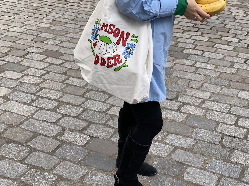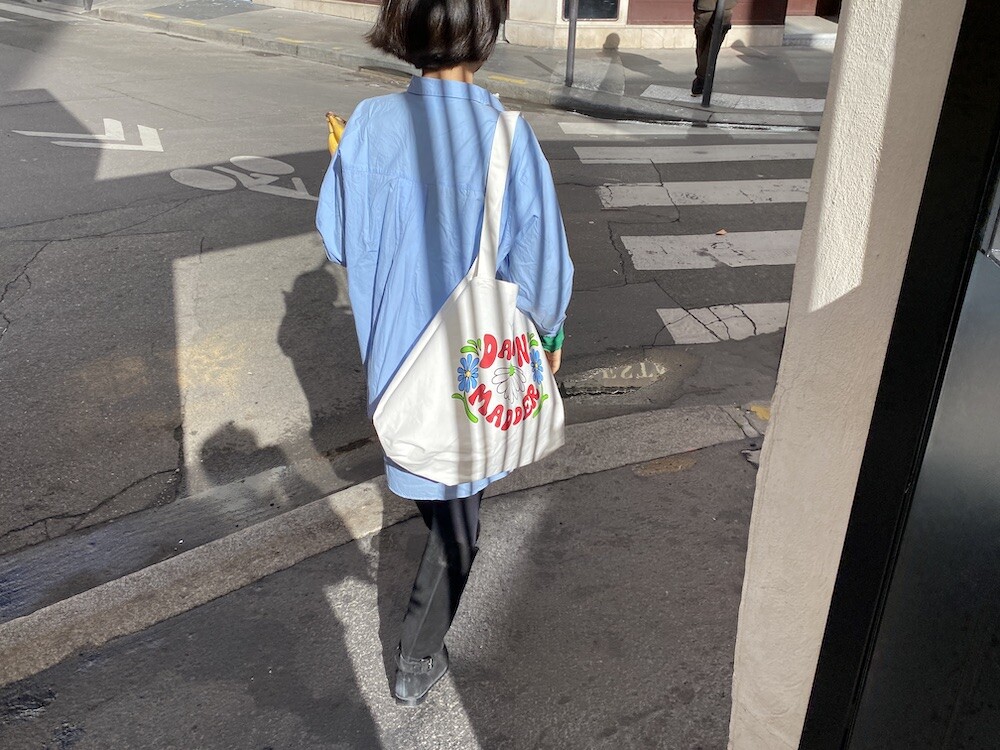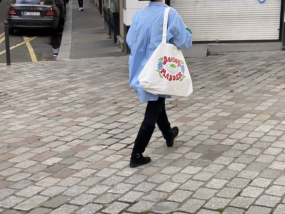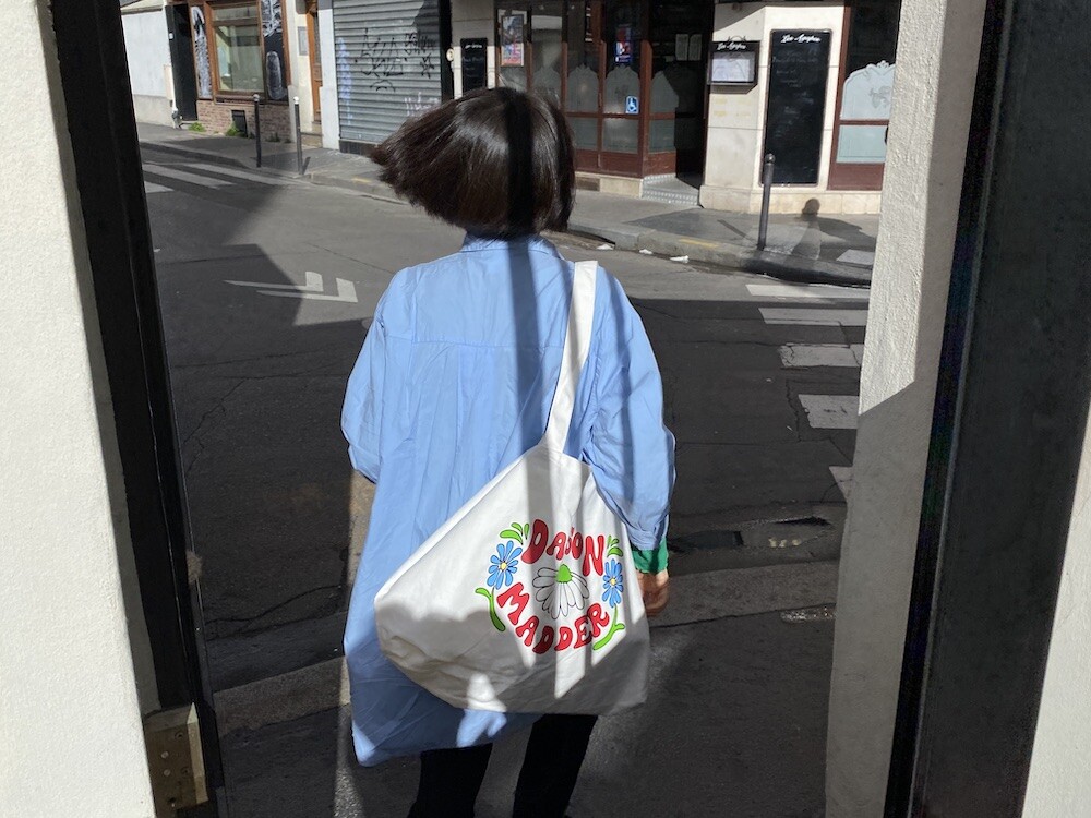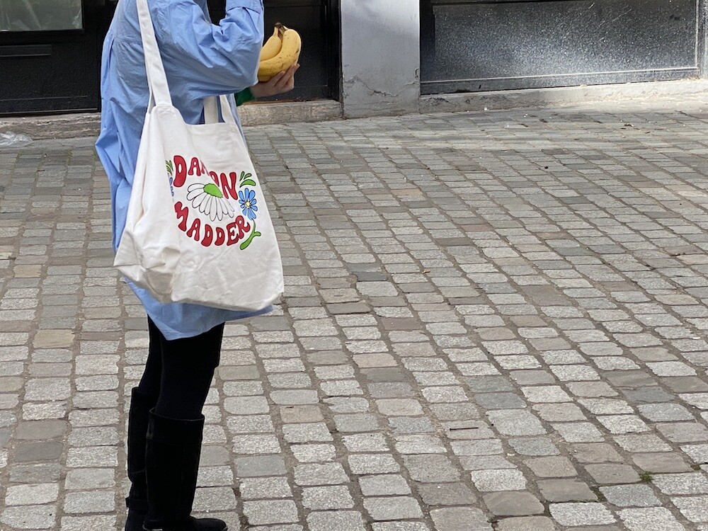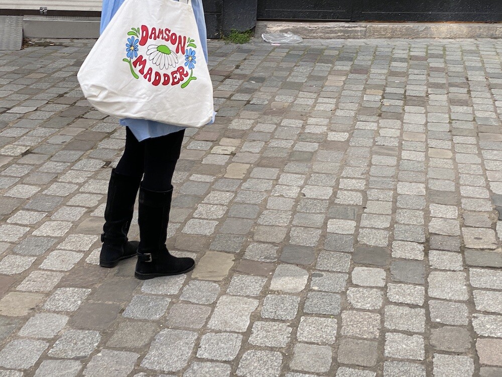 프린트가 귀여운 에코백이에요. 브랜드의 시그니처인 데이지꽃을 다양한 모양과 색으로 그린 그림에 DAMSON MADDER라는 브랜드 이름을 귀엽게 써넣은 가방으로, 사이즈가 넉넉해서 짐 많은 날 혹은 여름의 해변에서 잘 사용하시게 될 거예요.