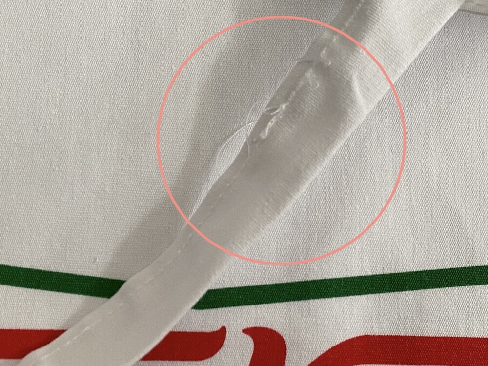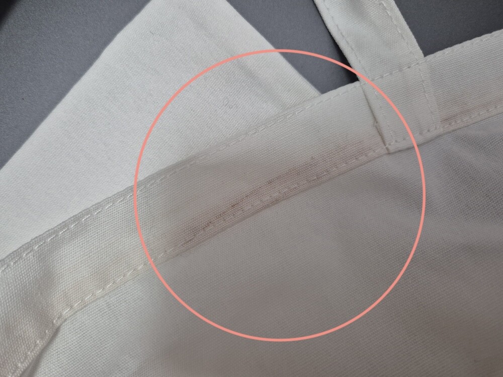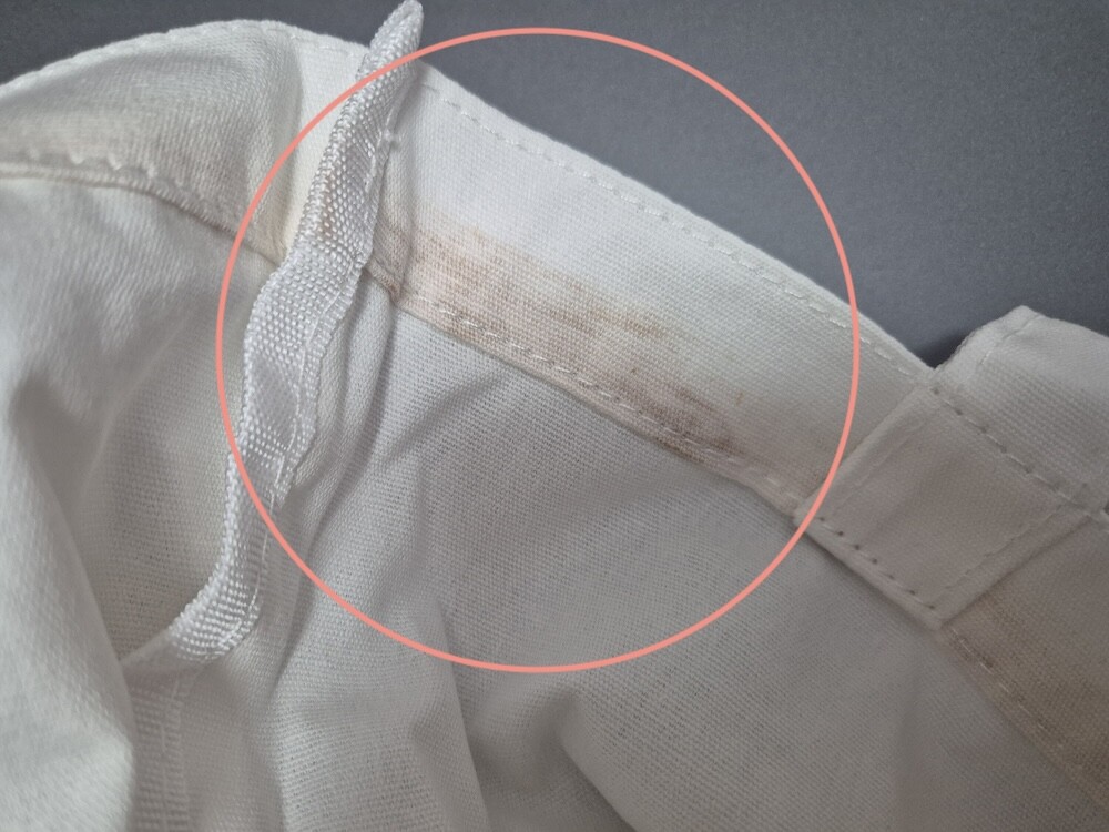 겉으로 보기에는 불량이 없으나, 오염이나 느슨한 박음질이 있을 수 있습니다.