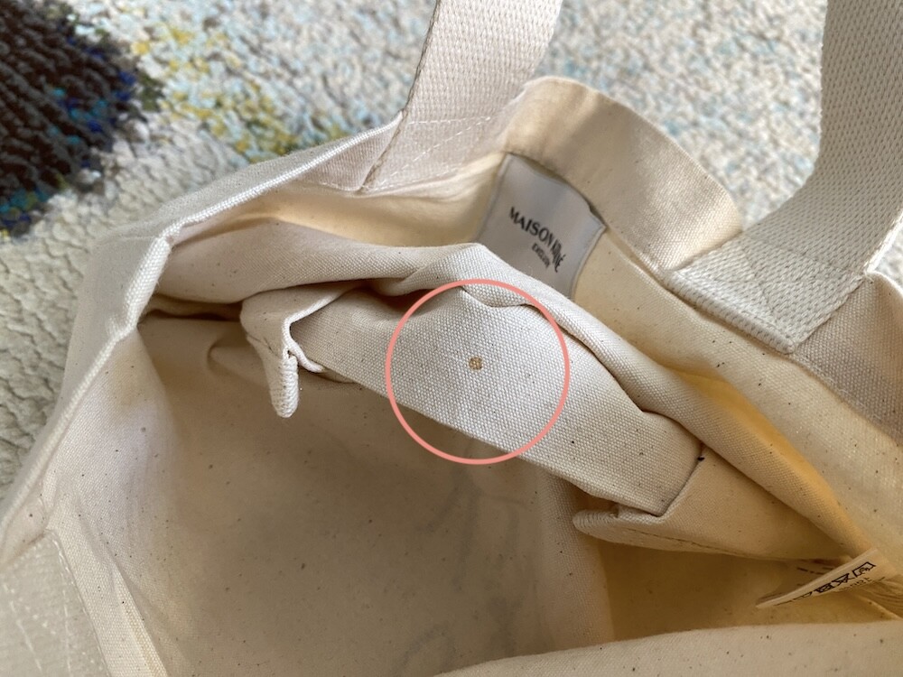 안쪽 원단에 커피 자국 오염이 있으나 사용하시는 데에는 문제가 없습니다.