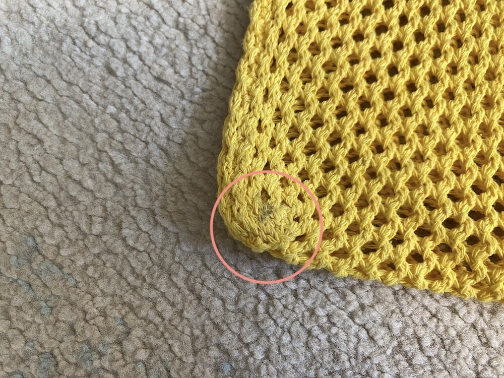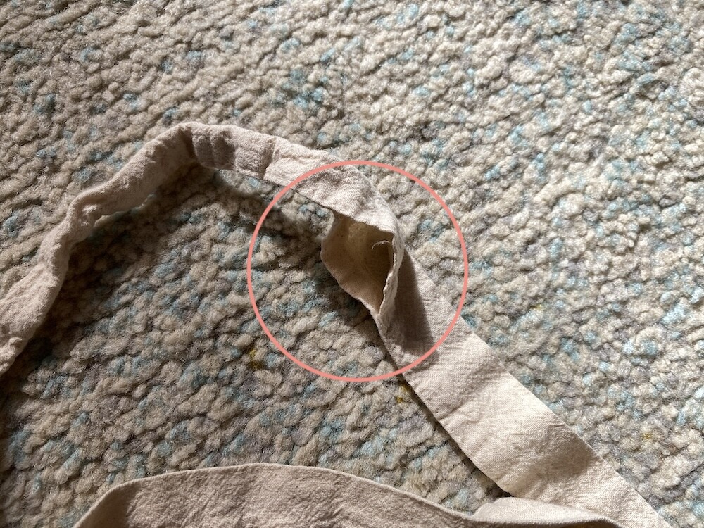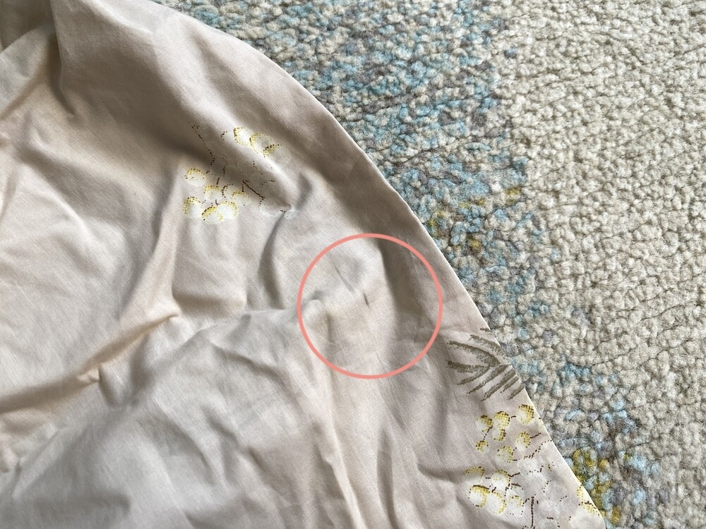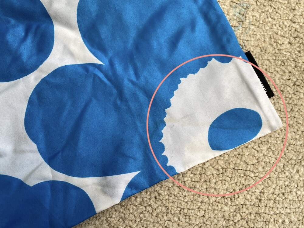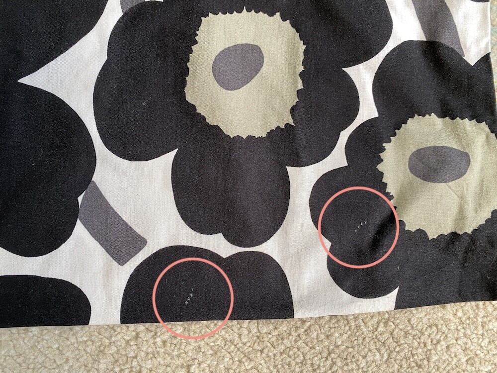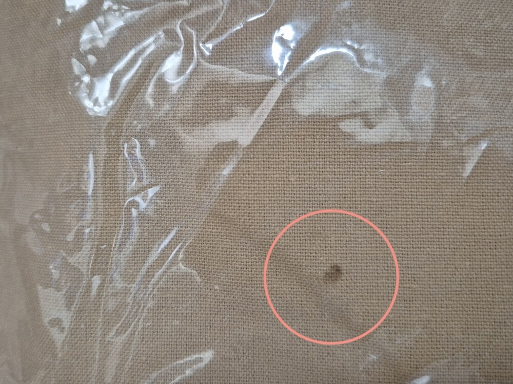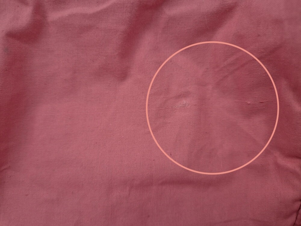 원단이 어딘가에 찍여 뚫린 부분이 몇 군데 있으나 사용하시는 데에는 문제가 없습니다.