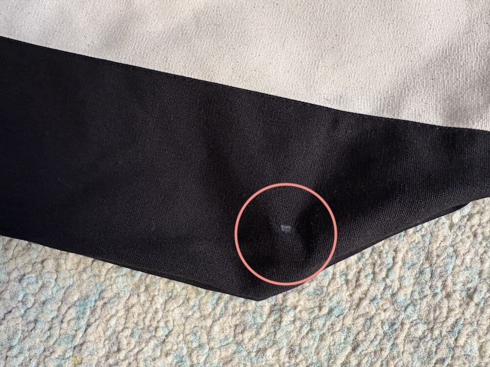 안쪽에 원단 불량이 있으나 사용하시는 데에는 불편이 없습니다.