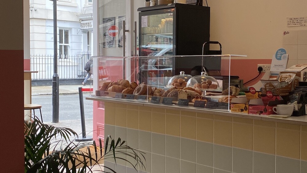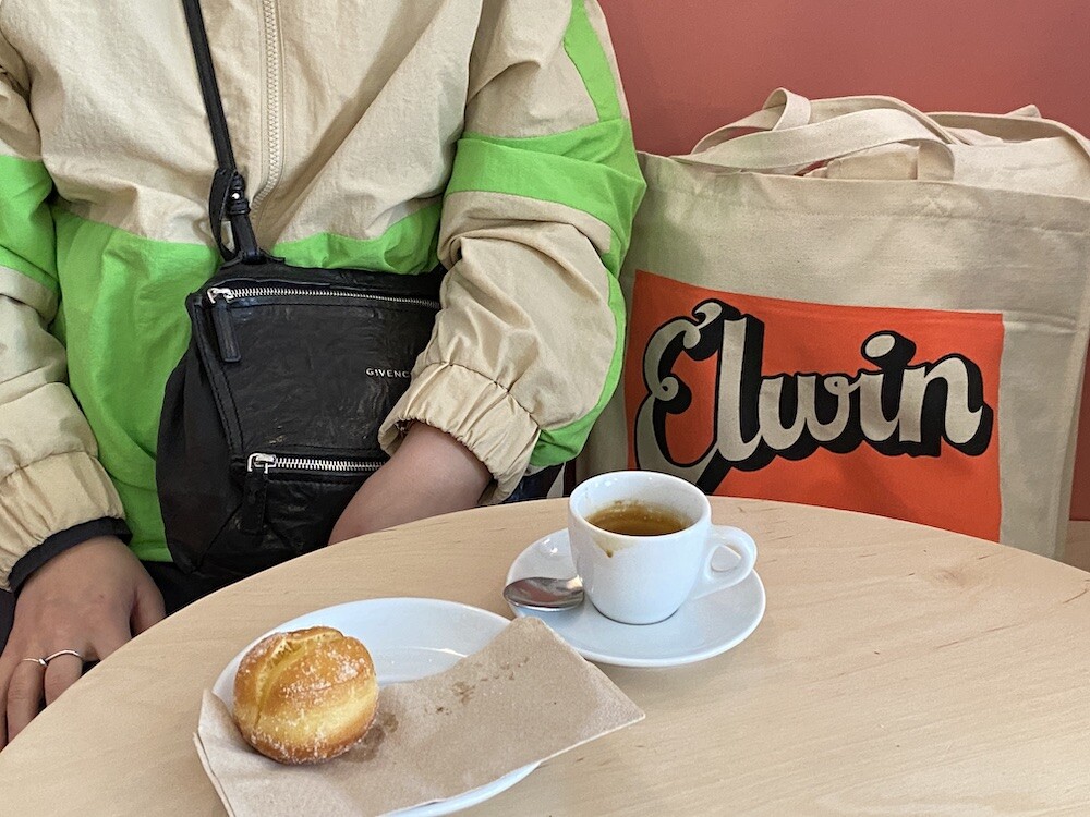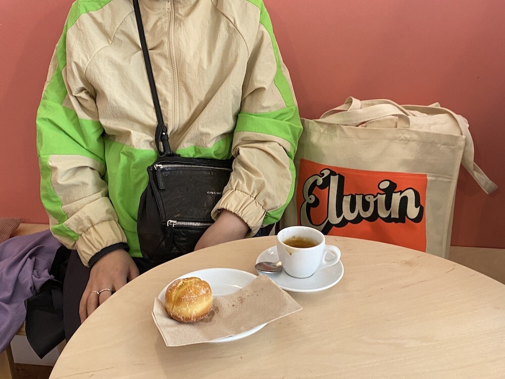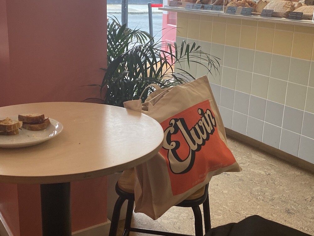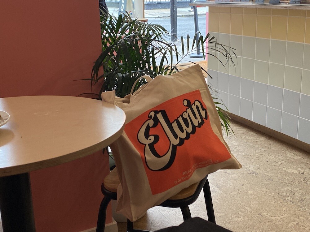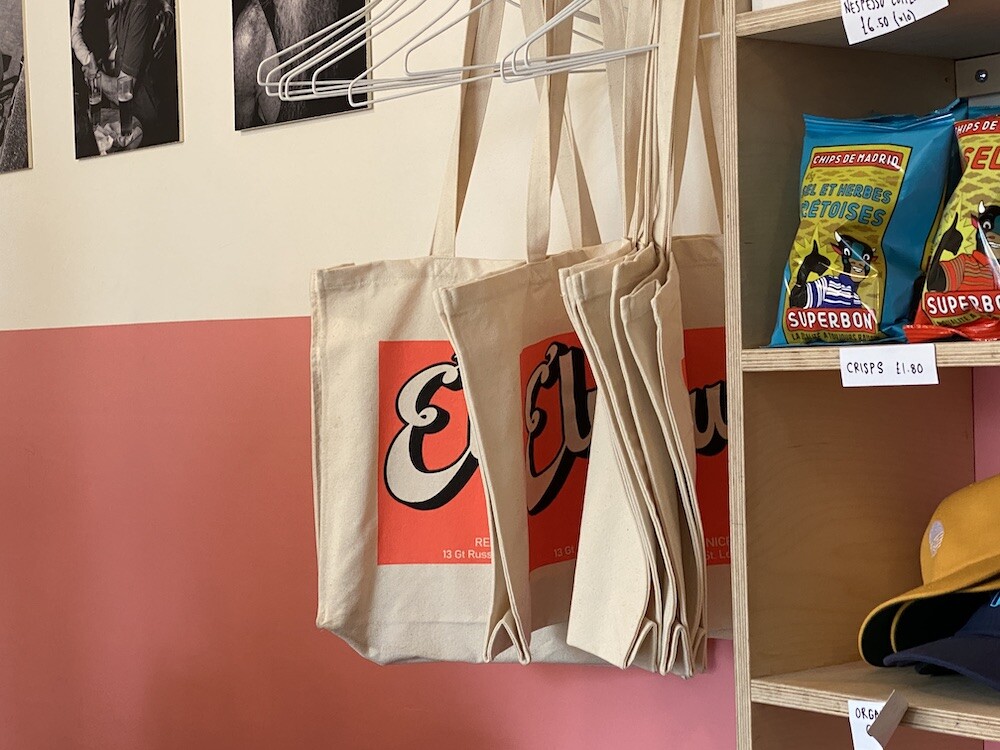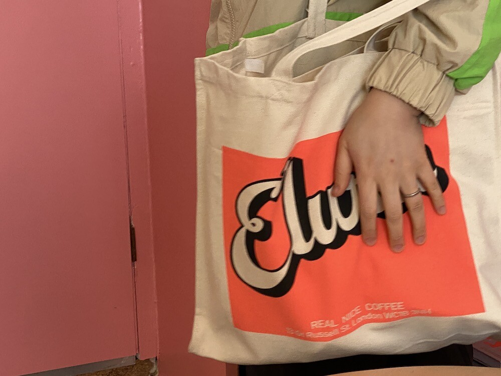 런던을 산책하다가 우연히 예쁜 카페를 발견했어요. 사진 전시가 열리고 있는 작은 카페였는데 내부가 너무 예뻐서 들어갔더니 커피도 도넛도 맛있더라고요. 게다가 눈에 확 띄는 예쁜 에코백까지 판매하고 있길래 바로 구매하게 되었어요.