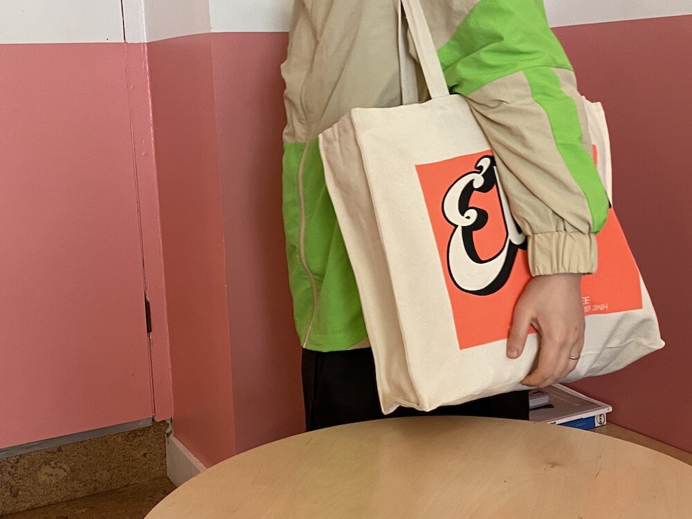 옆면과 밑면이 있는 박스 형태의 튼튼한 에코백입니다. 소재가 탄탄하고 모양이 잘 잡혀 있어서 책을 가지고 다니시거나 장보실 때 사용하시면 예쁠 거예요. 포인트 컬러인 분홍색도 정말 예쁘게 프린트되어 있답니다!