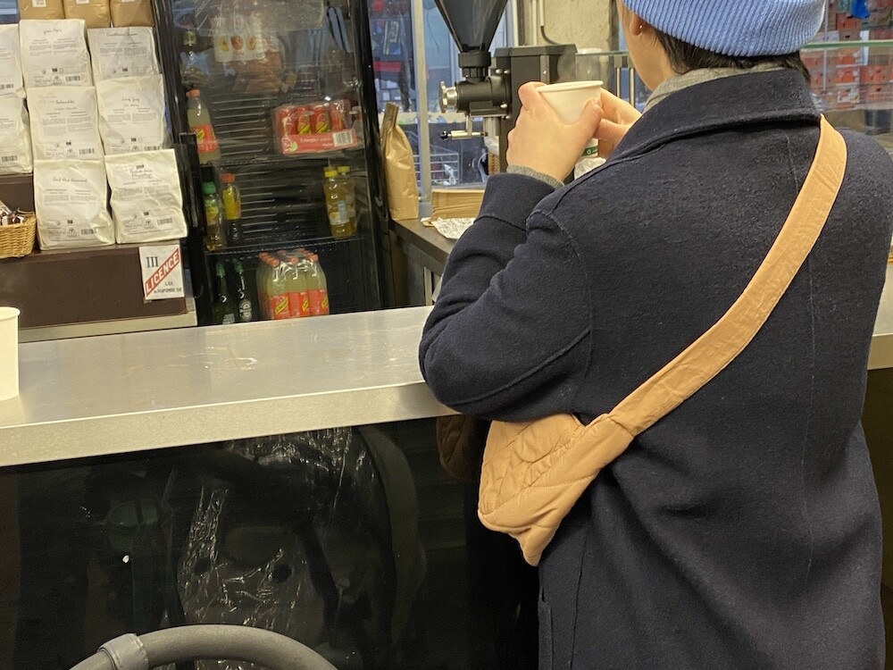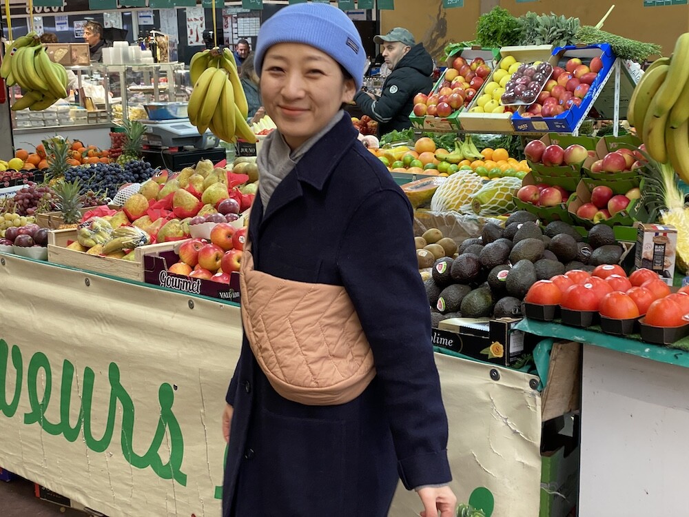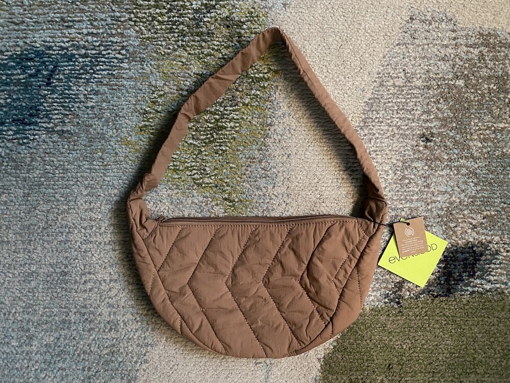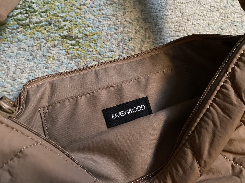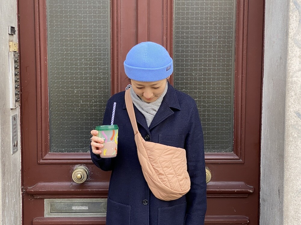 크로스로 멜 수 있는 범백(bumbag)이에요. 퀼팅된 소재로 만들어져 심심하지 않고 색깔이 튀지 않아 어떤 옷에나 잘 어울려요. 안쪽에 얇은 패딩 처리가 되어 있는데 이게 두툼하지 않고 가벼워서 사계절 내내 잘 사용하시게 될 거예요. 특히 원단의 원래 색깔은 연한 코코아 같은데 빛에 따라 연어색 같기도 하고 갈색 같기도 해서 예쁘더라고요. 저처럼 크로스로 메셔도 예쁘고 어깨에 토트백처럼 메셔도 예쁩니다.