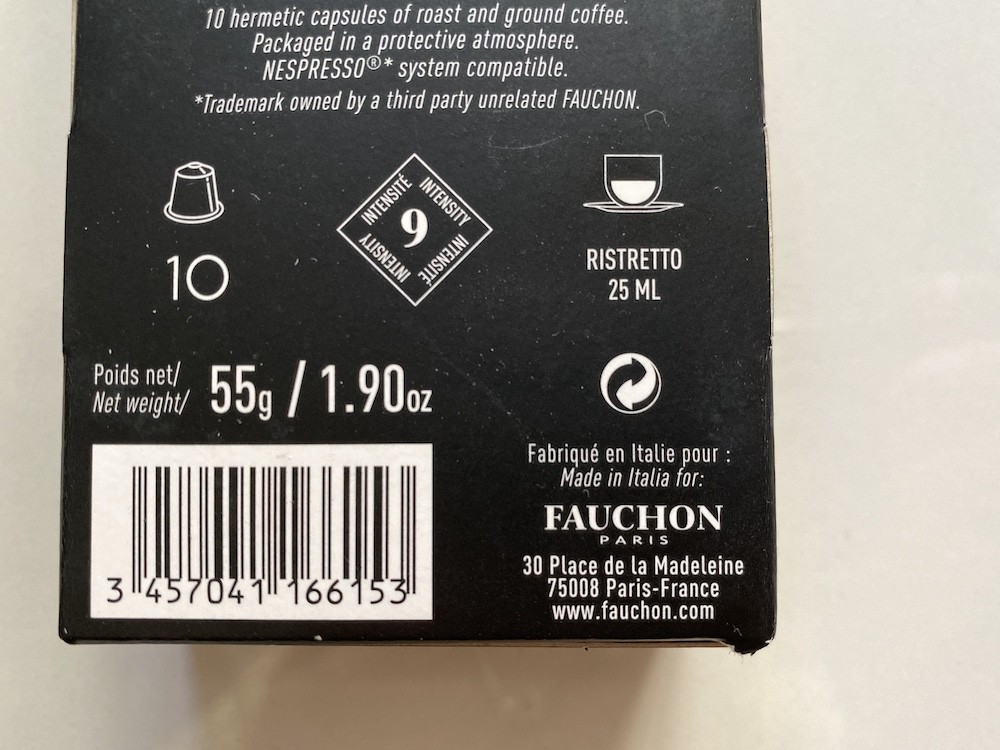 포숑(FAUCHON)의 네스프레소 캡슐 중 리스트레또(RISTRETTO)입니다.