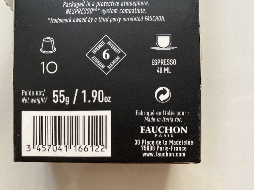 포숑(FAUCHON)의 네스프레소 캡슐 중 디카페인(DÉCAFÉINÉ)입니다.