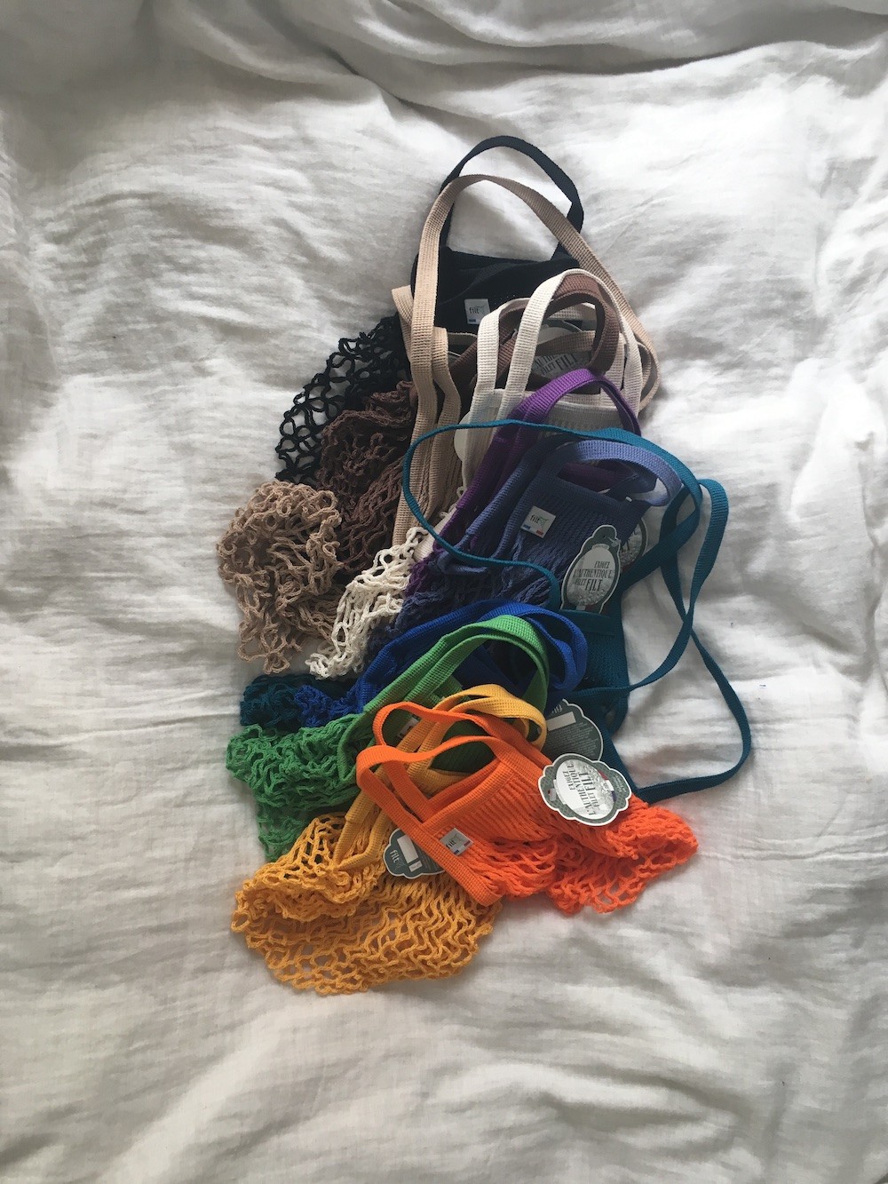 원래는 어린이용으로 나온 그물백인데 한국 사람들의 체구에는 이 사이즈가 잘 어울리더라고요. 그냥 보기엔 작아 보이지만 이것저것 물건을 넣으면 꽤 많이 늘어나서 간단하게 물건들을 살 때 장바구니로 활용하거나 평소에 세컨백으로 사용하시기 좋을 거예요.