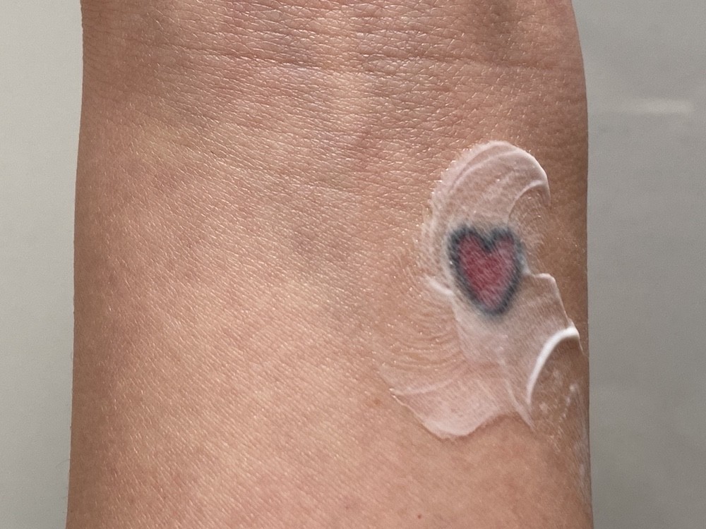 제 발 사진을 보시는 것이 꺼려지실 것 같아, 건조한 손목 부분에 사용한 사진으로 대신했어요.