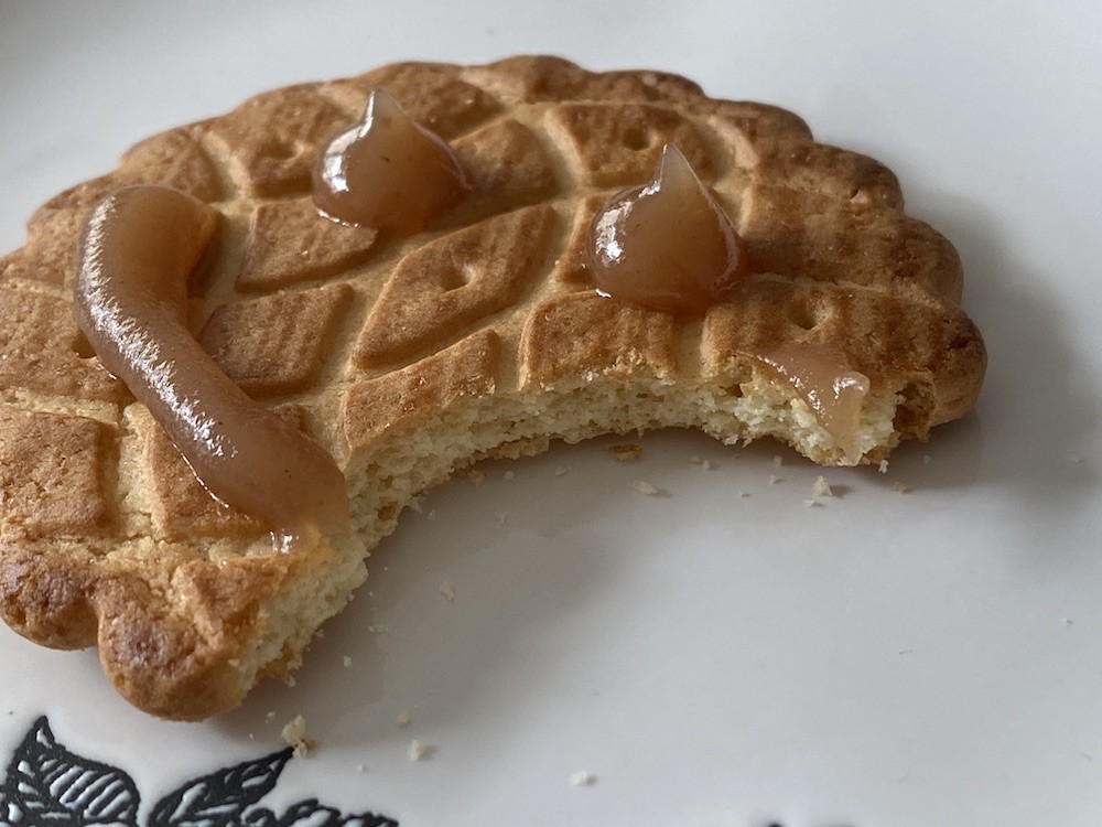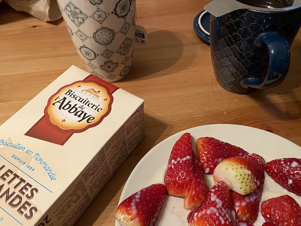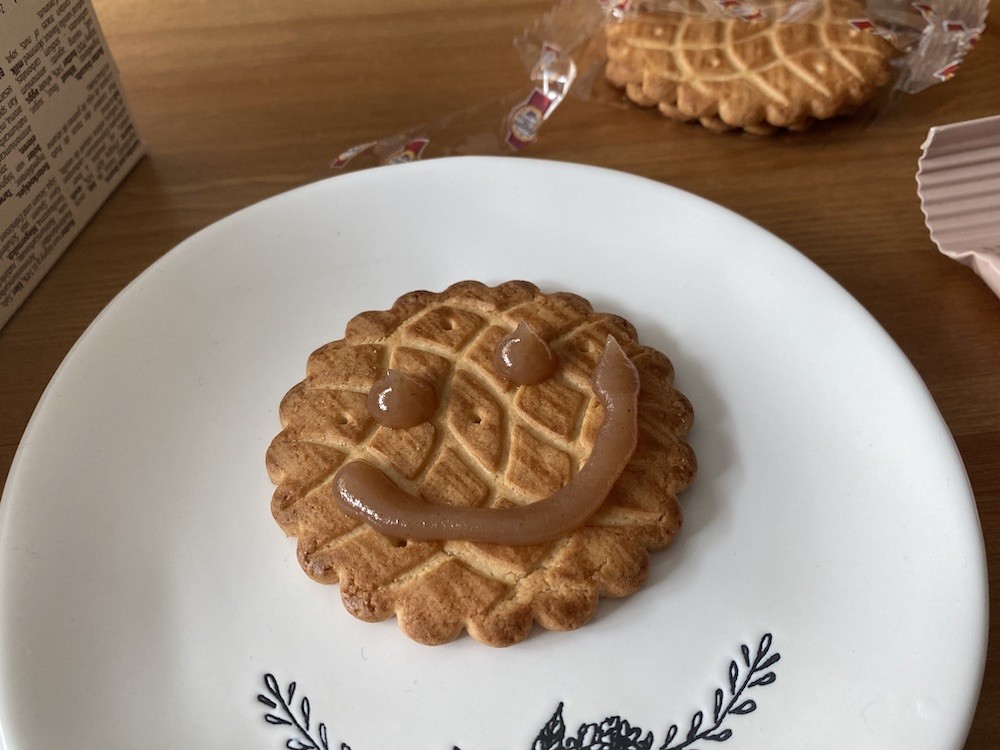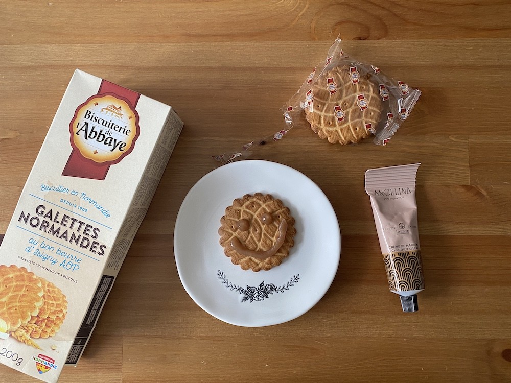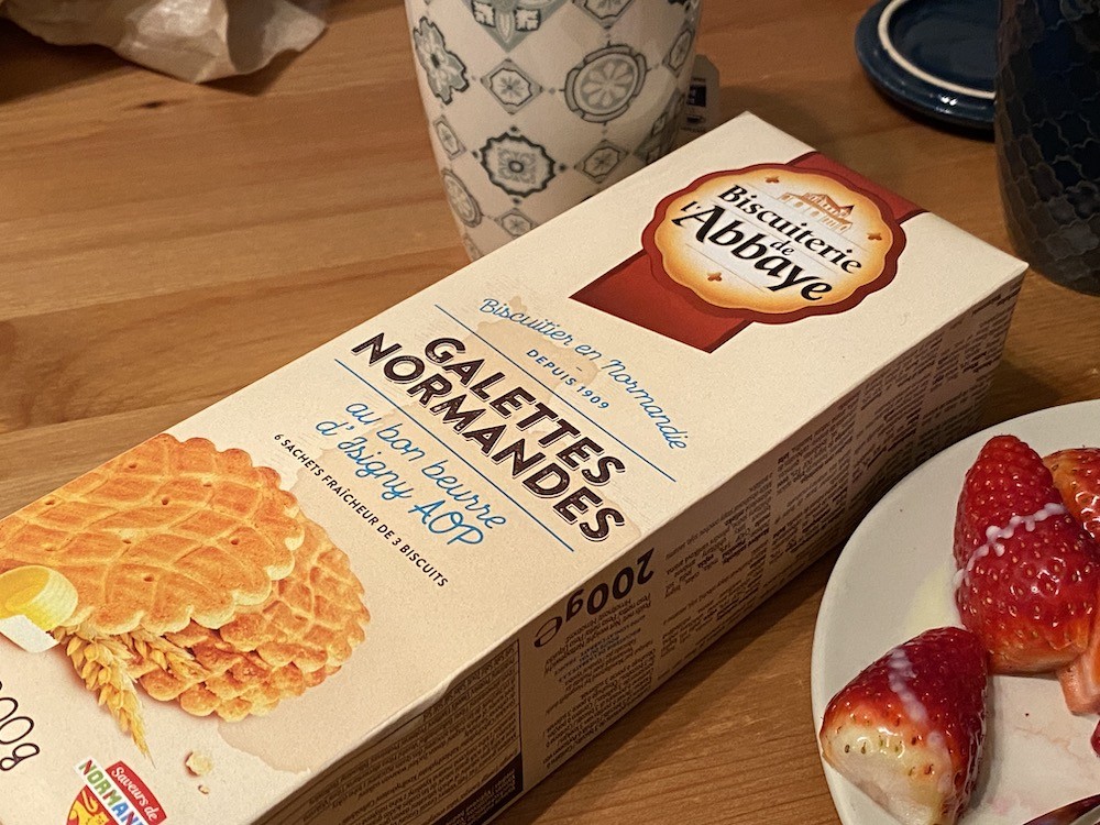 노르망디에 있는 비스킷 가게 Biscuiterie de l'Abbaye는 사블레, 걀레뜨와 같은 딱딱한 과자류를 만드는 곳이에요. 이 걀레뜨는 적당히 달콤한 맛에 바삭한 식감이 느껴지는 비스킷으로, 식감은 한국 과자 빠다 코코낫과 조금 비슷한데 그것보다 훨씬 두툼하고 단단해요. 남편은 요즘 이 비스킷에 빠져서 집에서도 후식으로 매일 먹고, 학교에 갈 때에도 항상 들고 다녀요. 요즘 먹어본 과자 중에 가장 입맛에 잘 맞는다고요.