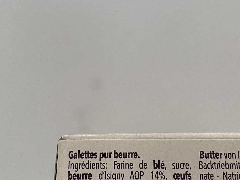 또한 이 걀레뜨 안에는 이제는 한국에서도 유명한 버터인 이지니 버터(beurre d'Isigny)가 14%나 들어가 있어요. 이왕 먹는 것, 몸에 좋은 버터가 들어있는 비스킷을 먹자고요 우리!
