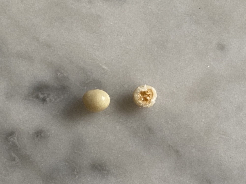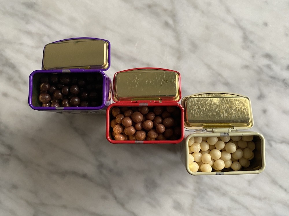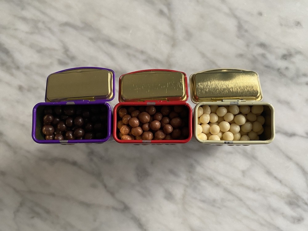 작고 동그란 초콜릿 안에 과자가 들어있어서 바삭하게 씹어먹는 식감이 좋은 초콜릿으로, 알갱이가 작아서 씹히는 맛이 더 있어요. 틴케이스에 들어있어 가방 안에 쏙 넣고 다니기 좋고, 양이 적어 보여도 꽤 많이 들어있어요. 갑작스럽게 당이 필요할 때 혹은 초콜릿 딱 한조각만 먹고 싶다! 이런 생각이 들 때 한입 탁 털어넣기 좋더라고요.