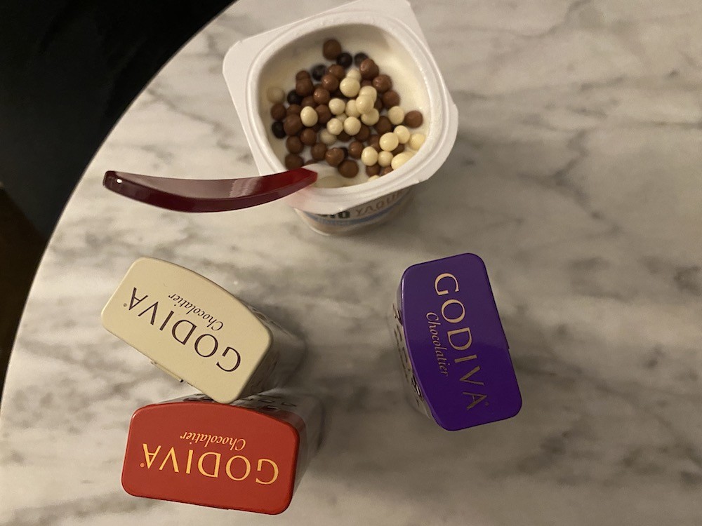 남편이 좋아하는 플레인 요거트 + 고디바의 조합이에요.