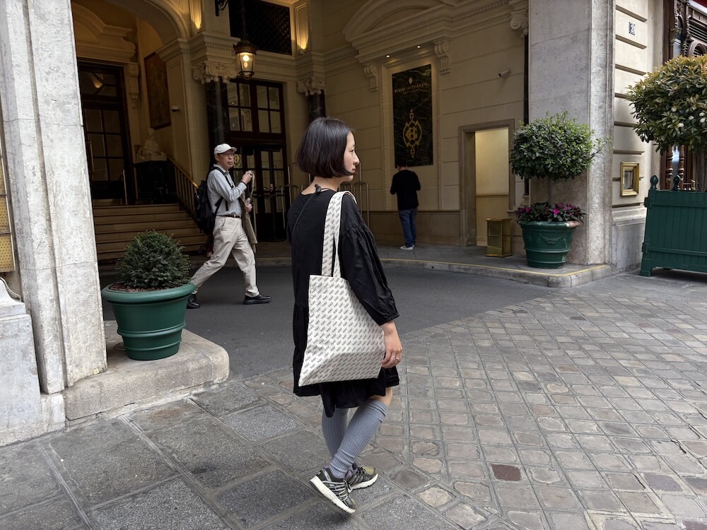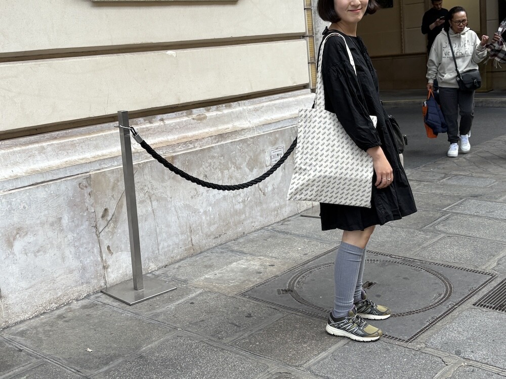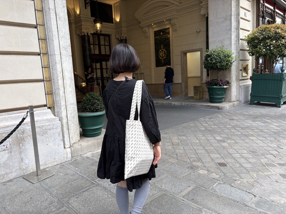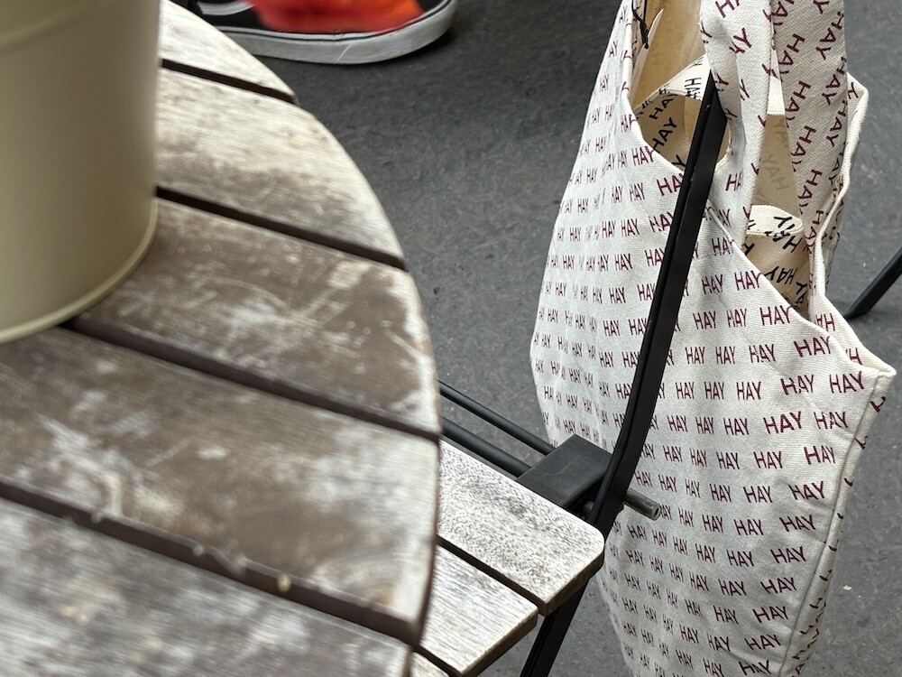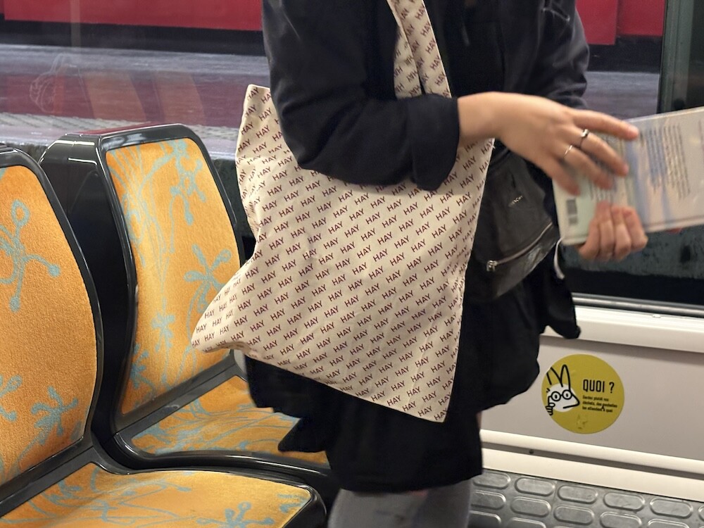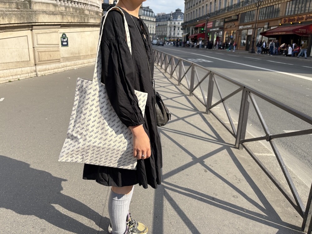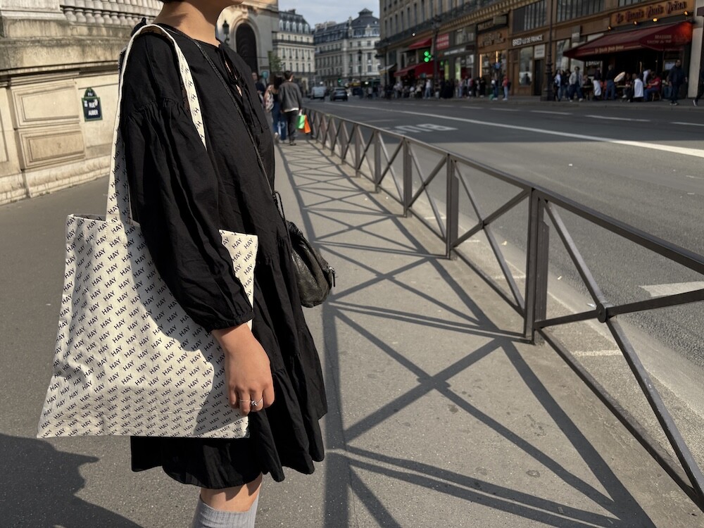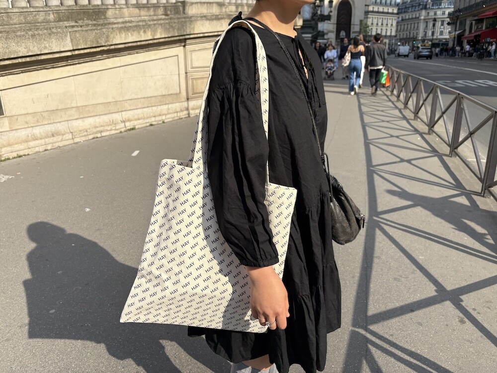 탄탄한 오가닉 면 원단에 헤이 HAY 로고가 사선으로 프린트된 제품이에요. 글씨가 작아서 멀리서 보면 패턴처럼 보이는 게 예뻐요. 어깨끈이 두꺼워서 무거운 물건들을 많이 넣어도 안정감 있게 어깨에 멜 수 있으니 무거운 짐을 많이 넣으셔야 할 때 사용하시기 좋을 거예요.