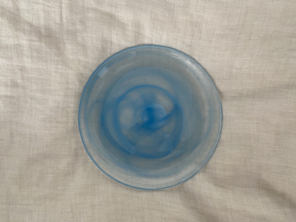 이 유리 접시는 디퓨저의 연기가 퍼지는 것 같은 모양이 너무 예뻐요. 완전 투명과 파란 투명색이 섞여 있어서 색깔도 독특하죠. 아주 튼튼한 유리라 데일리로 사용하시기 좋을 거예요. 예쁜 색깔의 그릇 하나를 들여놓는 것 만으로 기분이 좋아지실 걸요? :)