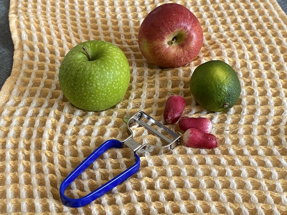 파란색 손잡이가 예쁜 필러예요. 크기가 크지 않아서 잡고 자르는 데에 부담이 없고 무엇보다 껍질이 아주 얇게 잘려서 좋아요. 제가 지금까지 사용해 본 필러 중 야채 껍질이 가장 얇게 잘리기 때문에 버려지는 과육이 많지 않아 아주 만족스럽네요. 껍질이 얇게 잘리기 때문에 야채 뿐 아니라 과일 껍질을 까는 데 사용해도 좋더라고요. 칼로 과일 자르는 게 익숙치 않은 분들께서는 필러로 껍질을 까셔도 될 것 같아요.
